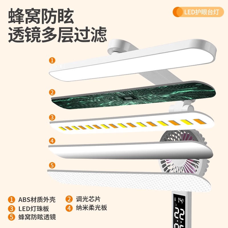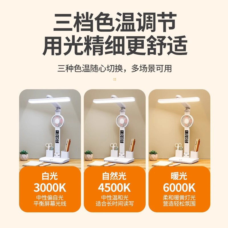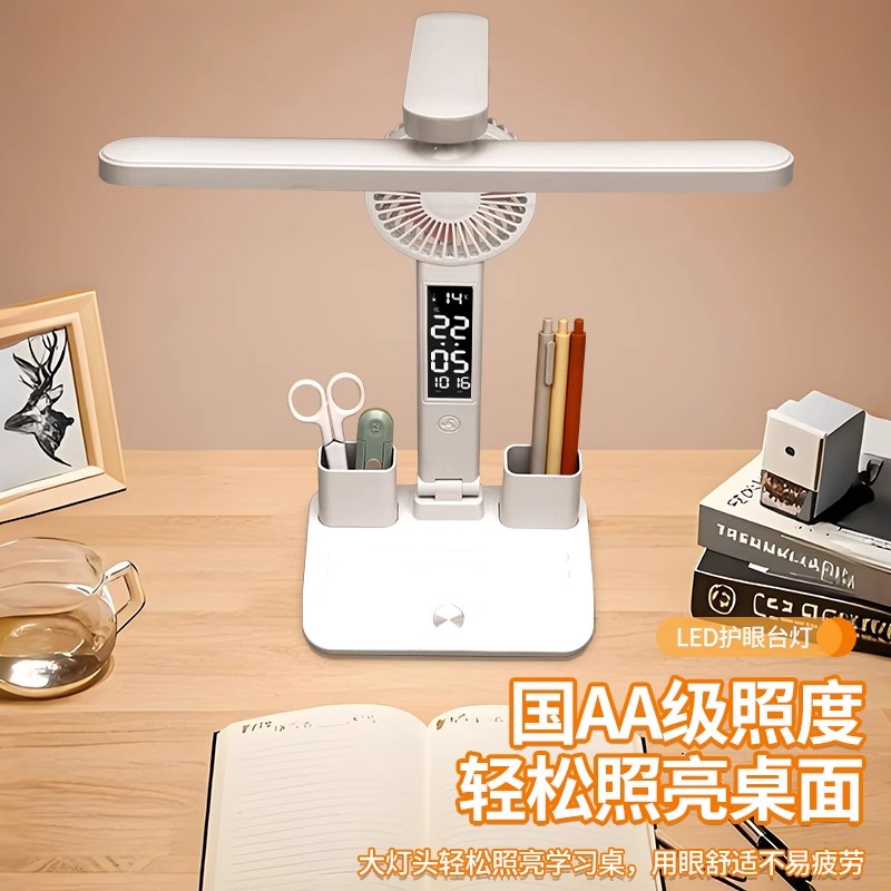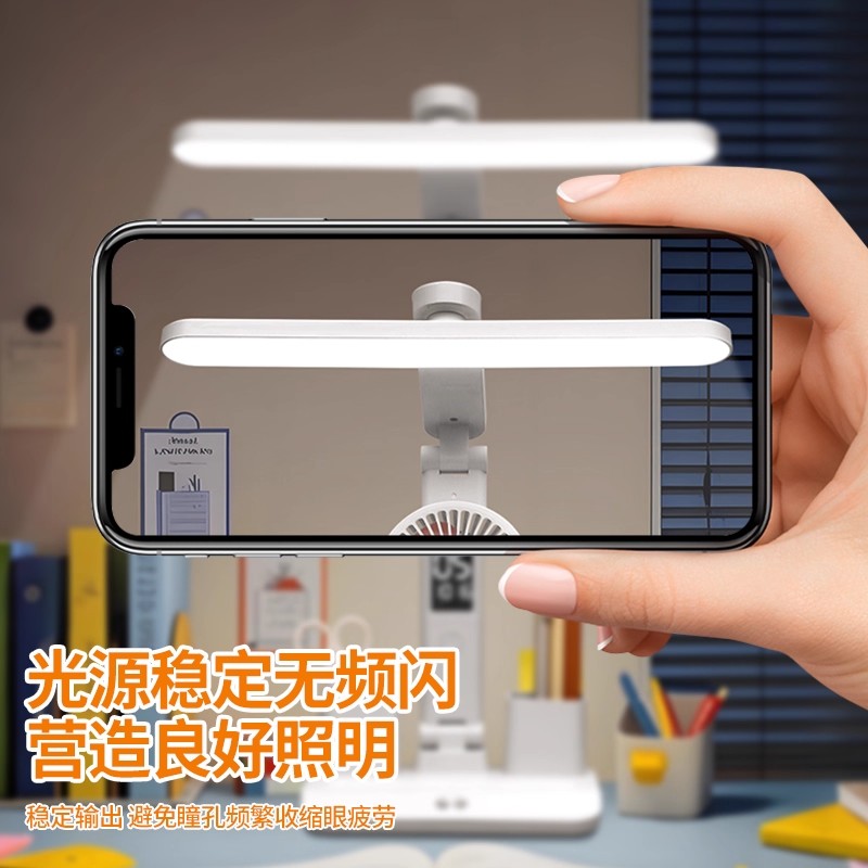 风扇护眼台灯学习专用大学生宿舍桌面学习灯智能充电插电照明折叠