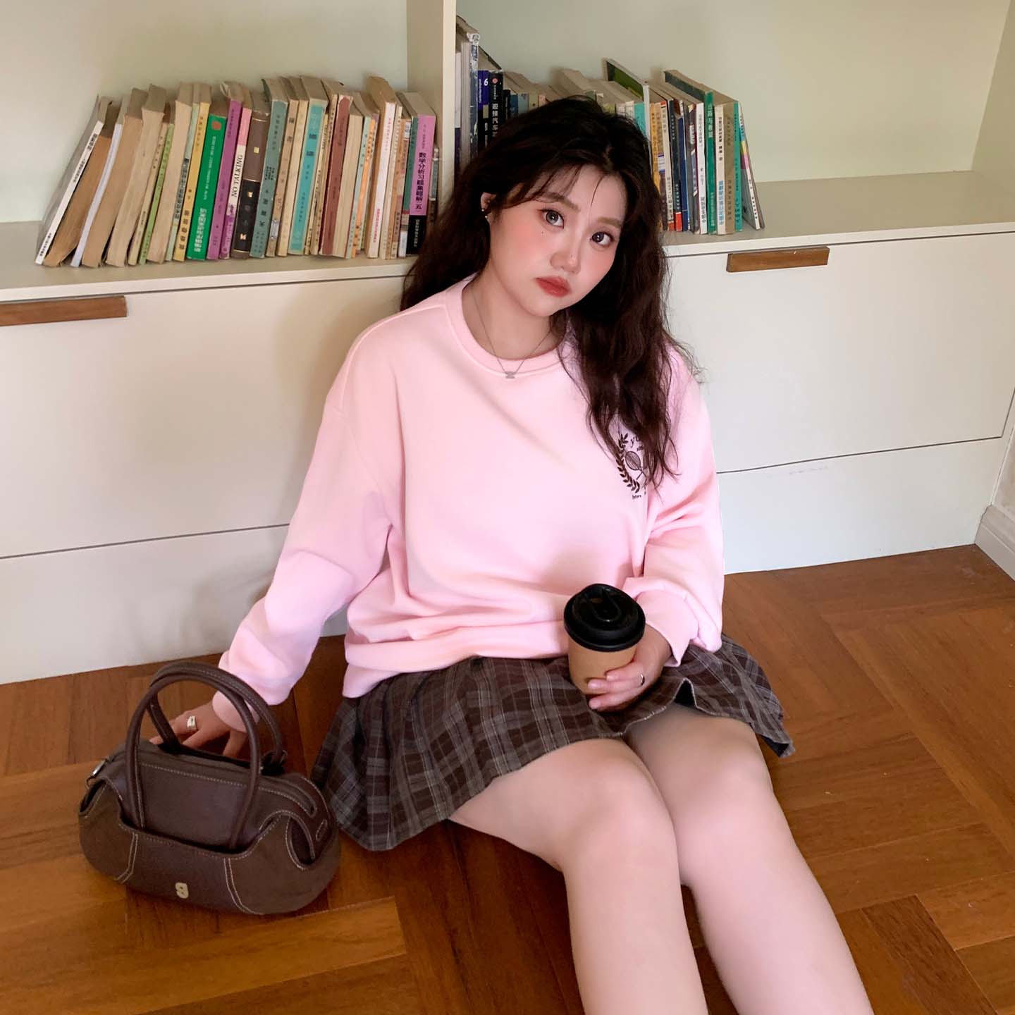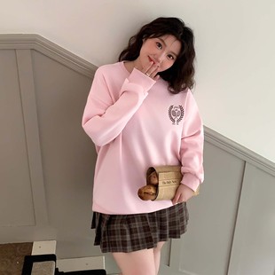 气甜美 微胖mm显瘦遮肉200斤元 YUZI鱼子薄绒圆领卫衣大码 女装