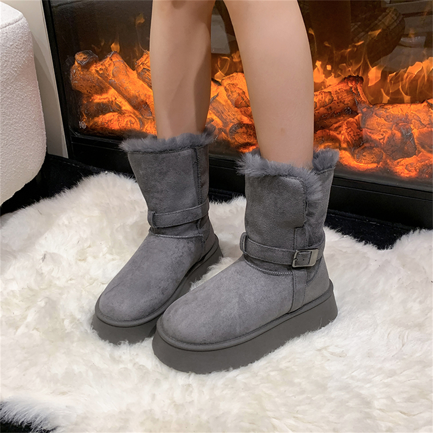 毛茸茸两穿雪地靴女2025冬季 厚底加绒保暖短靴百搭小个子靴子 新款