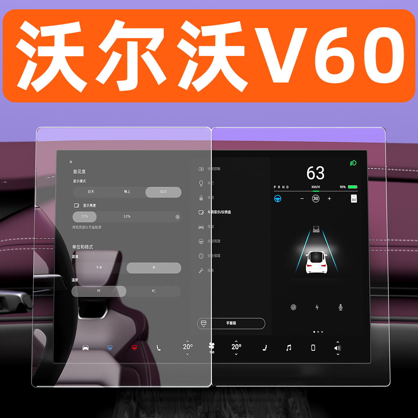 沃尔沃V60屏幕钢化膜中控显示器大屏保护膜汽车内饰车机导航贴膜