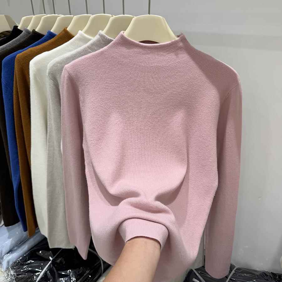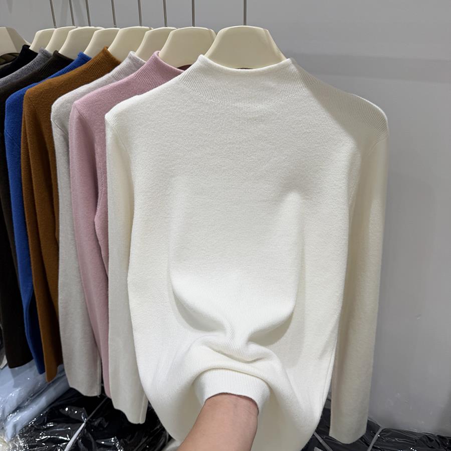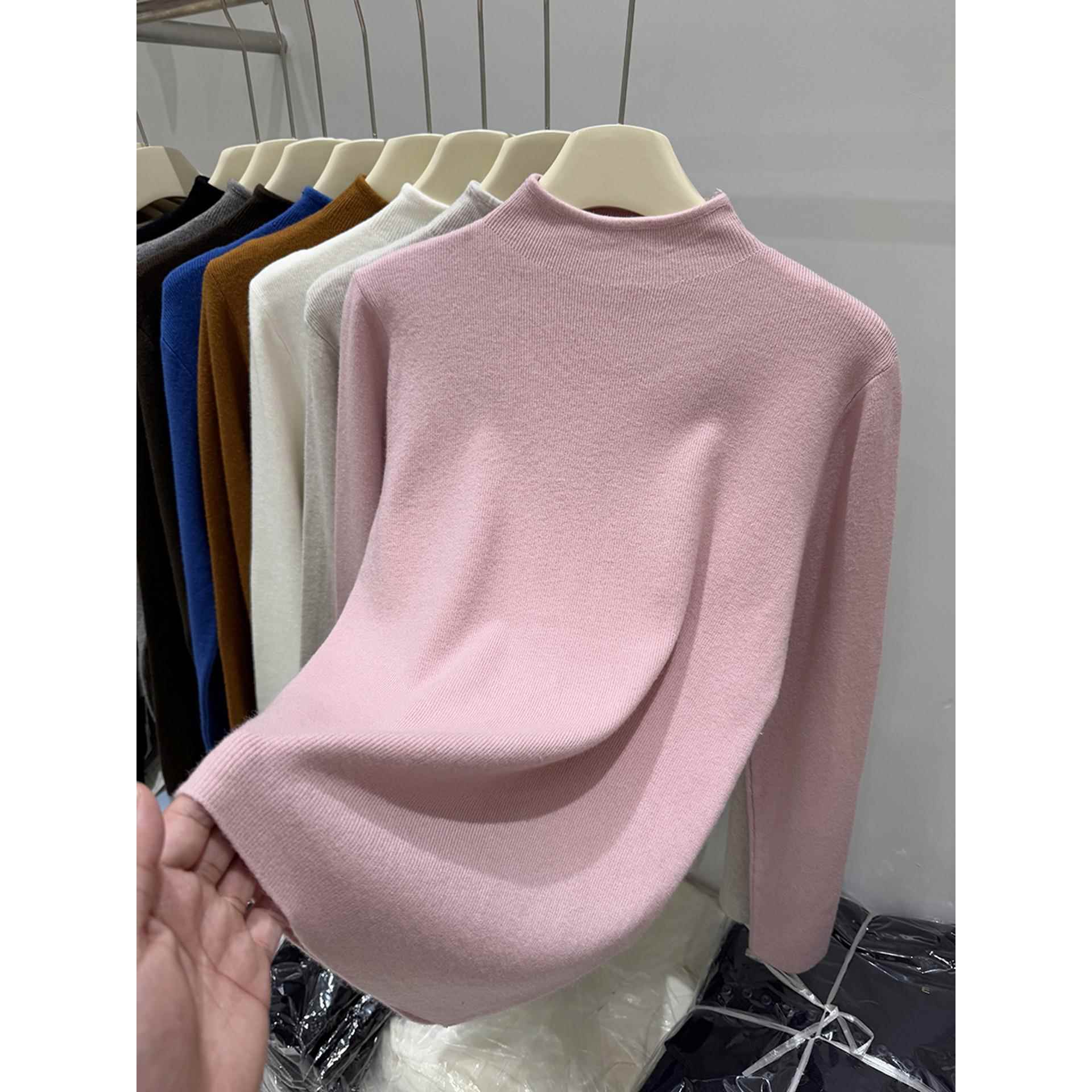 上衣1022e 弹毛衣内搭打底衫 浅粉色半高领针织衫 女秋2025修身
