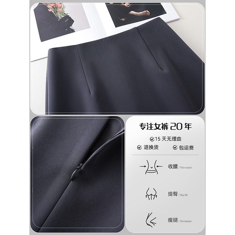 开叉包臀一步裙 高腰遮胯显瘦中长款 黑色毛呢半身裙女2025秋季 新款