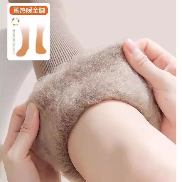 过膝长筒袜女ins潮羊绒袜保暖袜不冻脚冬季 加厚睡眠袜月子袜产后