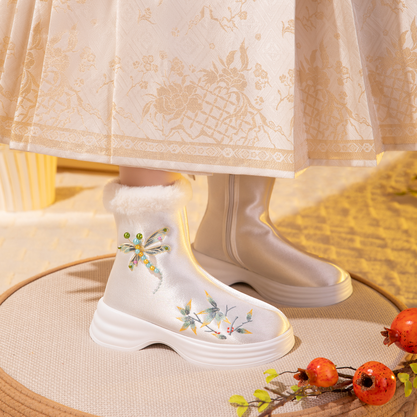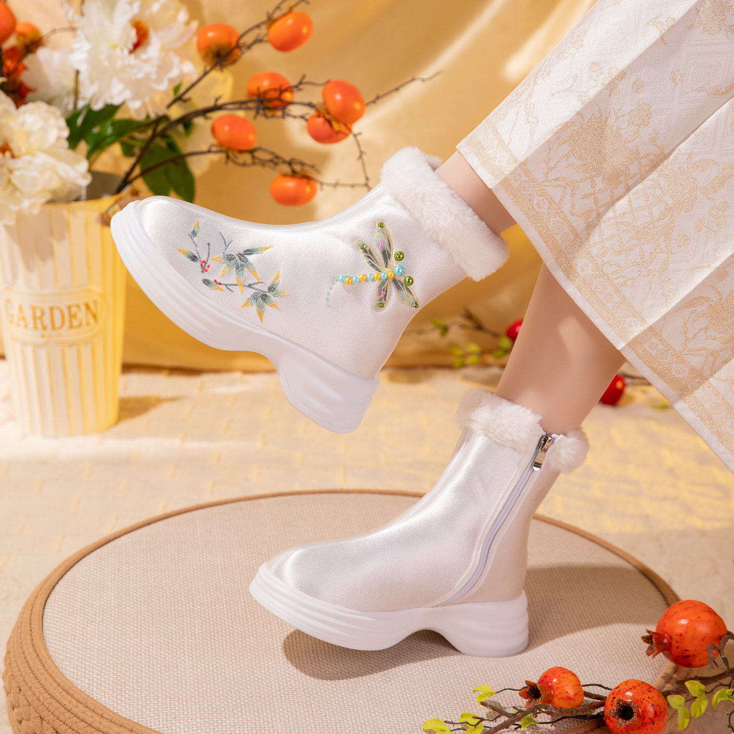 妈妈鞋 绣花鞋 时尚 搭配汉服古风内增高坡跟民族风古风布鞋 子女新款
