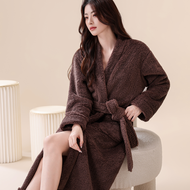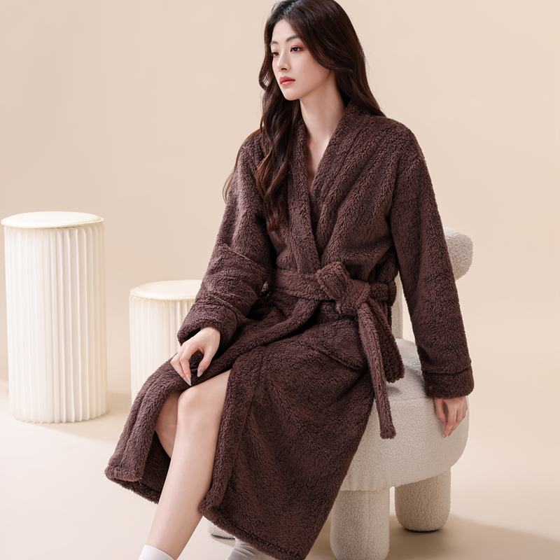 洗澡浴袍吸水法兰绒晨袍外穿 睡袍女秋冬加厚大码 中长款 珊瑚绒长款