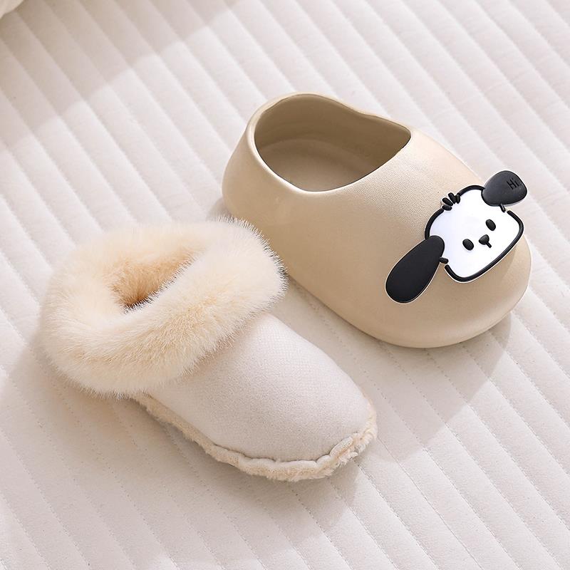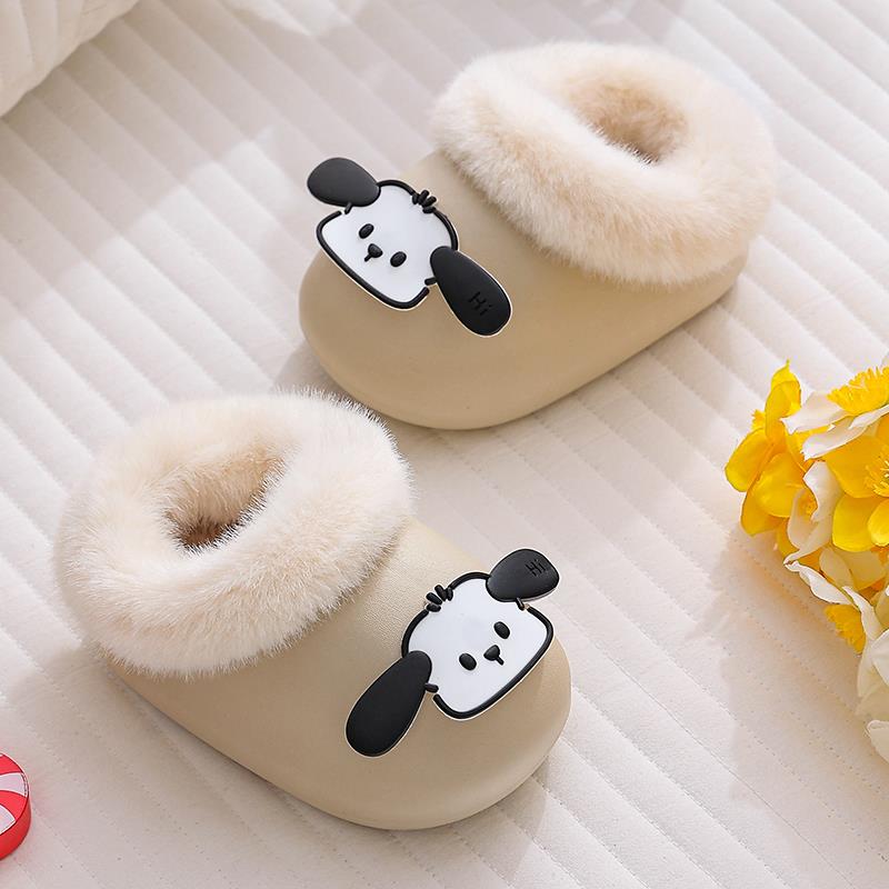 男童女童防滑外穿保暖棉鞋 可爱小狗室内防水家居鞋 宝宝棉拖鞋 冬季