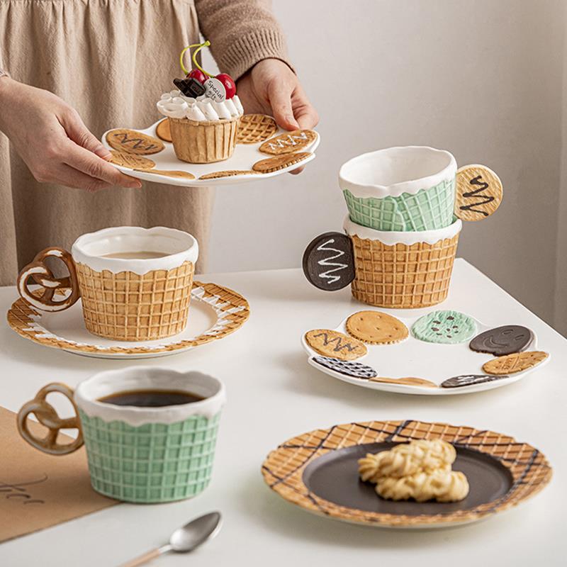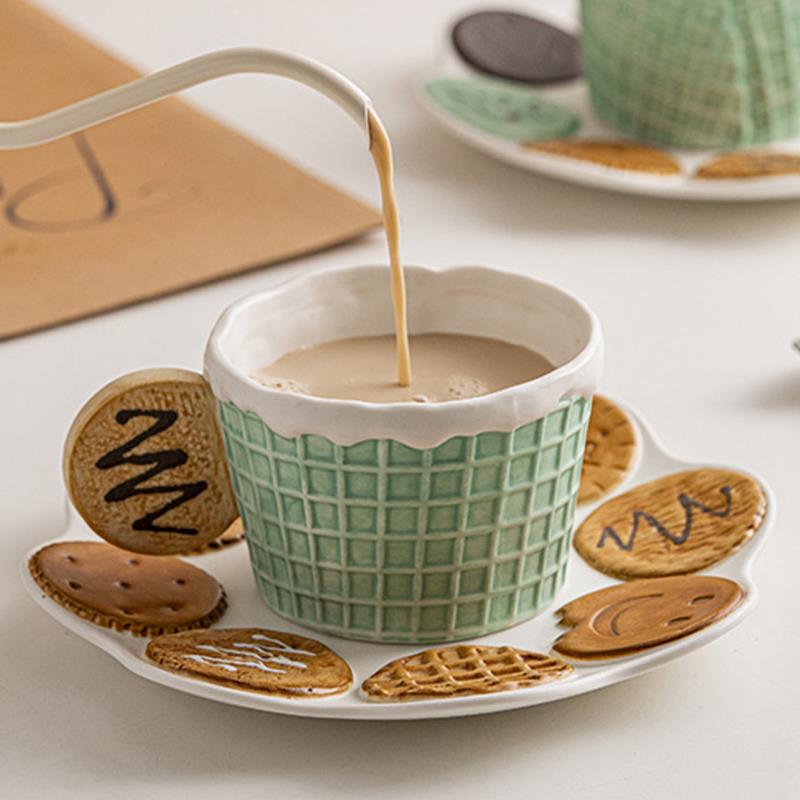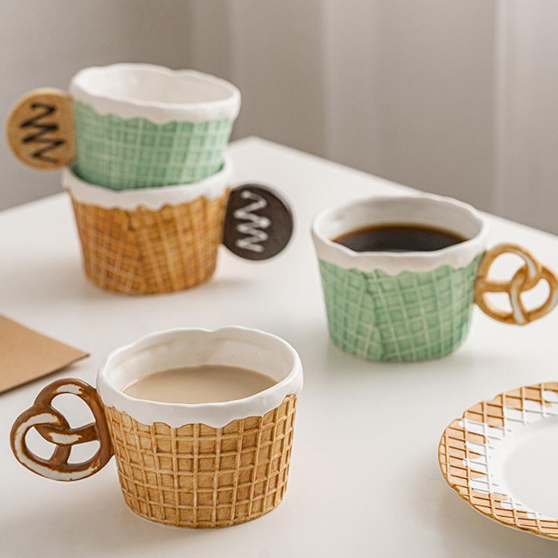 舍里高级感复古咖啡杯碟套装 创意粗陶拉花杯子家用高档精致马克杯