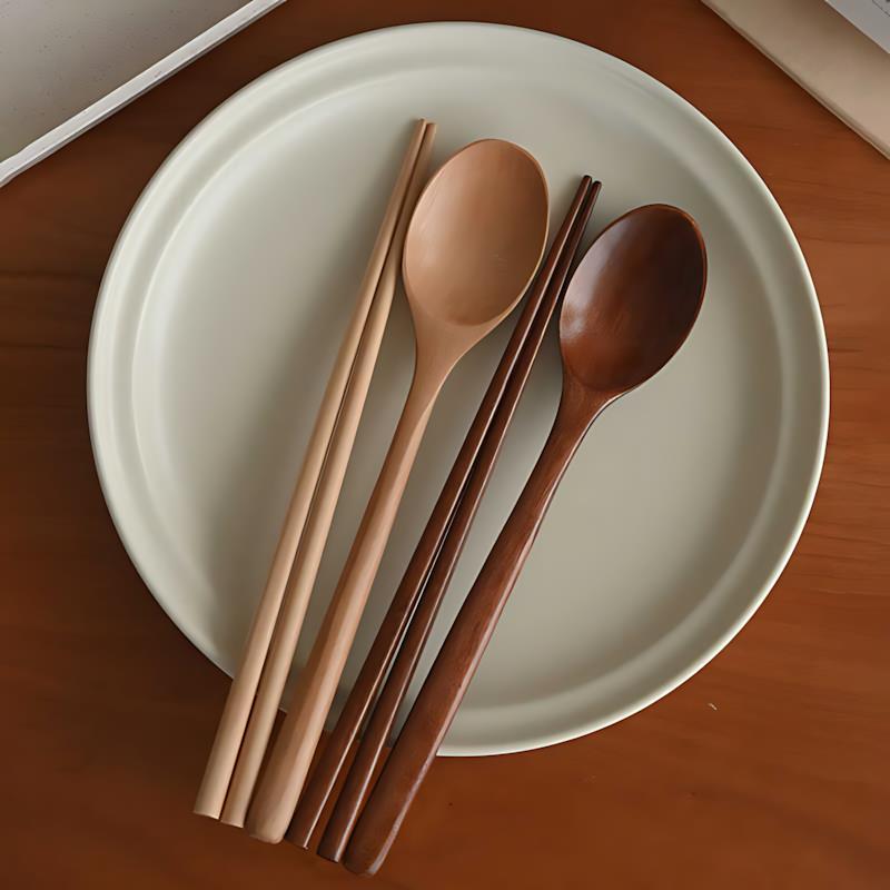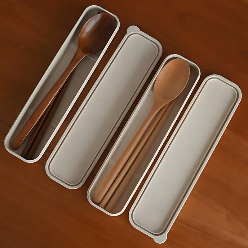 原木风餐具盒便携筷子收纳盒日 日本木质筷子勺子套装 天猫正品
