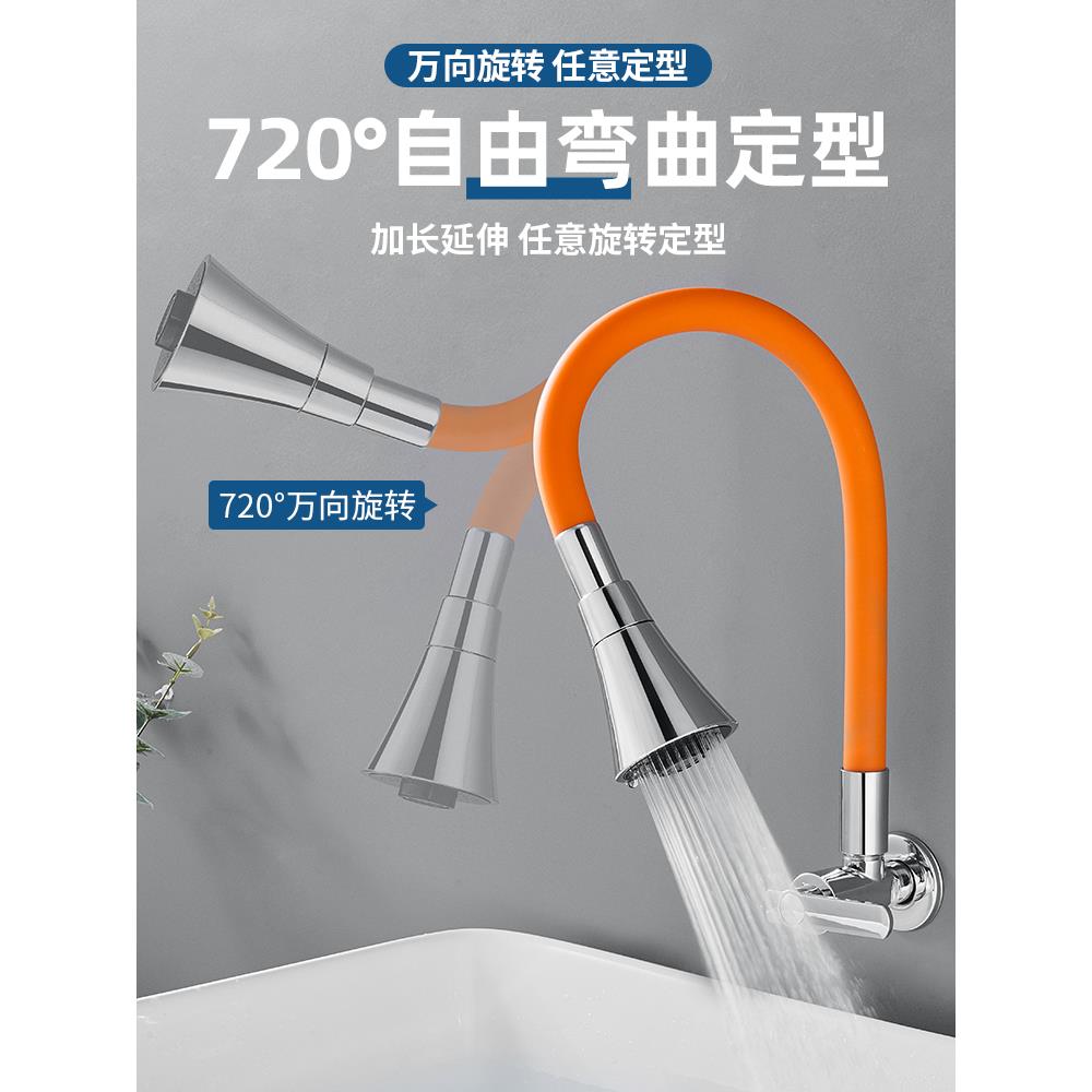 厨房万向单冷水龙头拖把池专用阳台入墙式 菜盆可旋转家用铜龙头