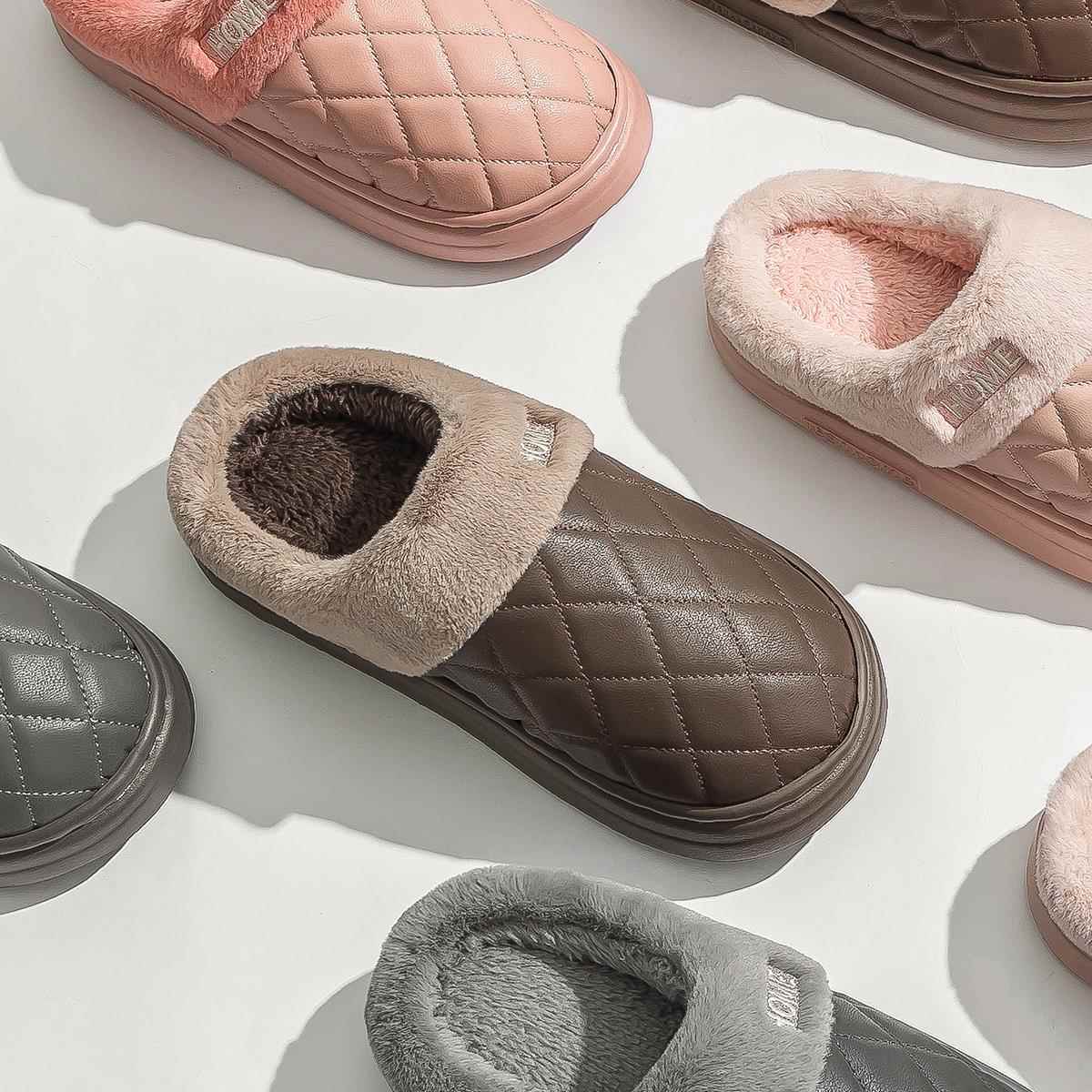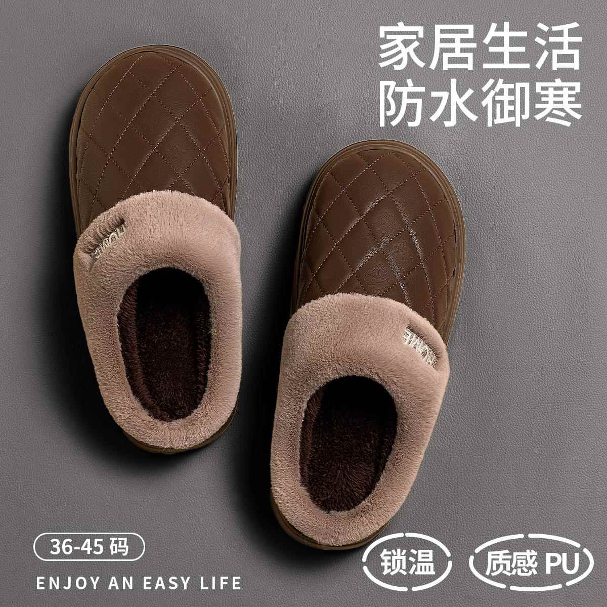 2025新款 防滑老人女冬季 室内居家保暖毛绒家用防水加厚 棉拖鞋 男士