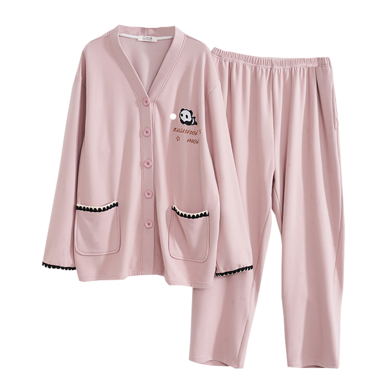 长袖 全棉大码 套装 女款 家居服 简约休闲秋季 芬腾春秋睡衣女纯棉开衫