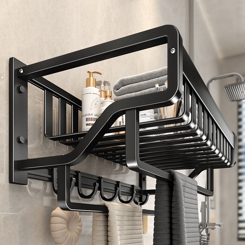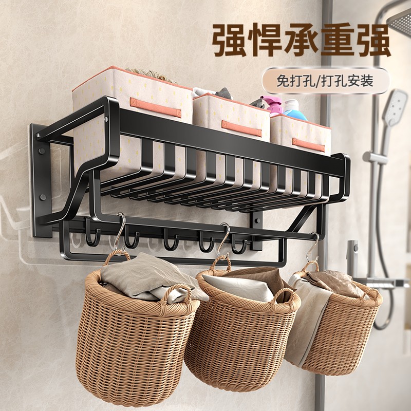 毛巾架化妆室置物架一体免打孔太空铝浴室厕所浴巾架卫浴挂件架子