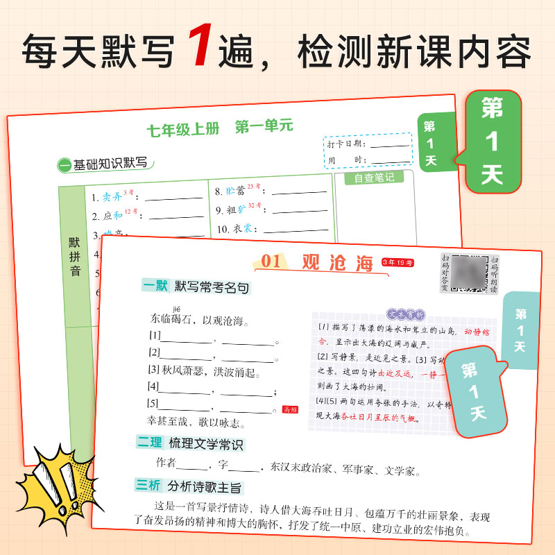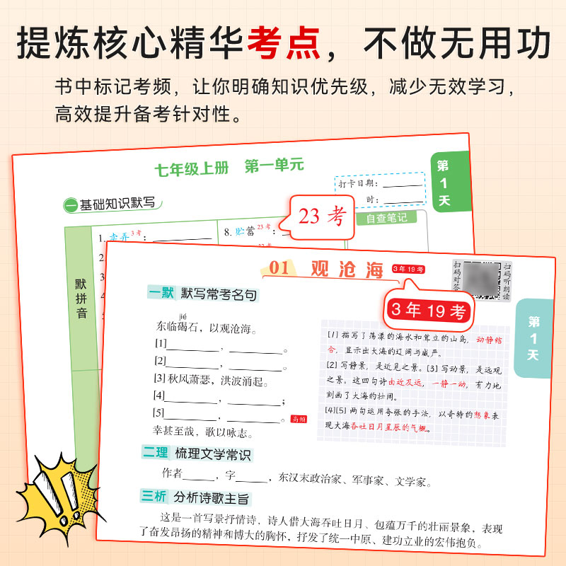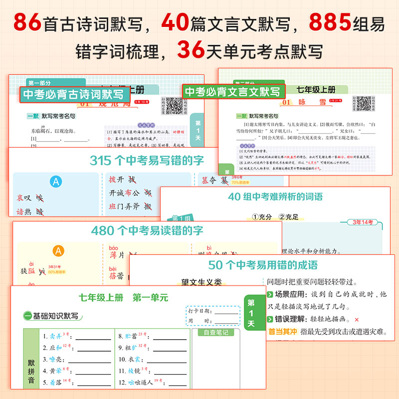汉知简满分默写初中古诗词文言文语文基础知识大全中学实验重难点练习本册化学英语词汇方程式 常识中考必考考点专项练习书人教版