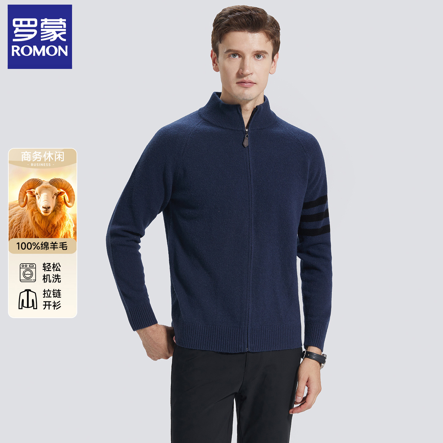 江南先生NewJNXS学院风刺绣套头针织衫 立领logo刺绣宽松毛衣 秋季