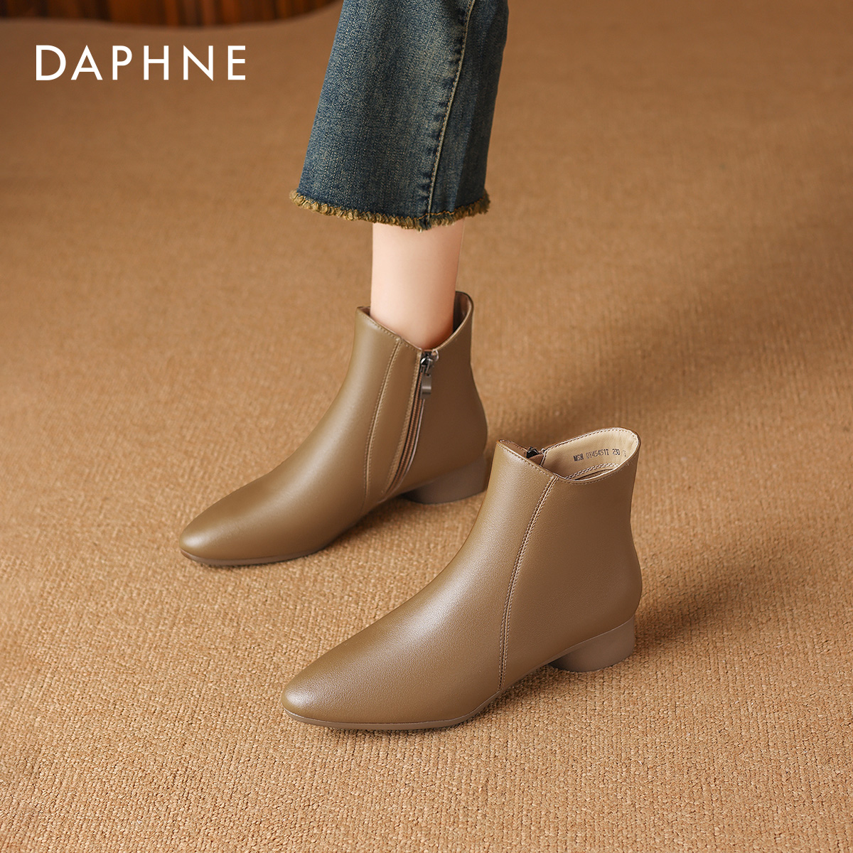 达芙妮尖头短靴女2025新款 秋冬加绒裸靴女士靴子妈妈靴低跟马丁靴