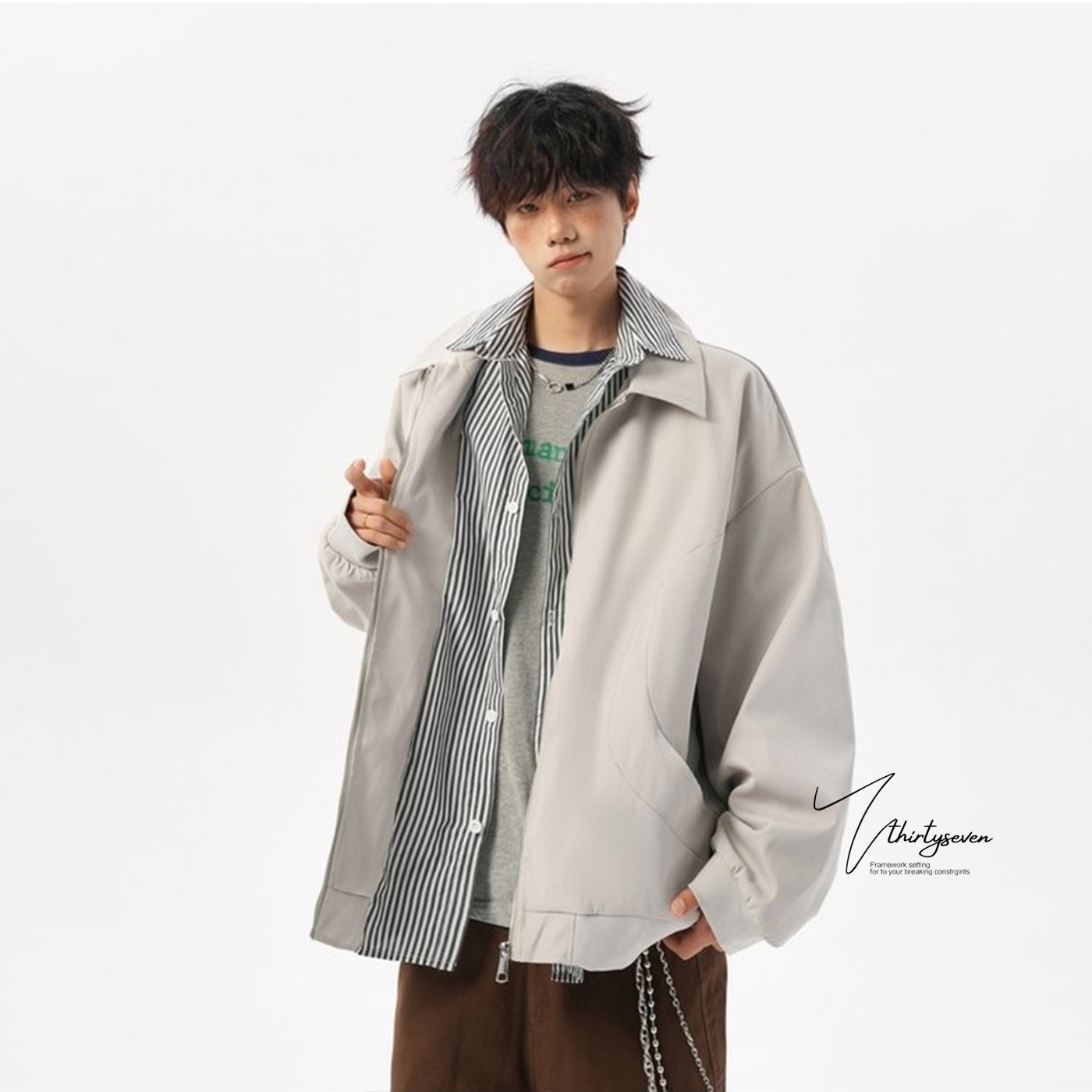 中学生上衣加绒加厚外套 男生休闲男士 青少年夹克2025年新款 秋冬季