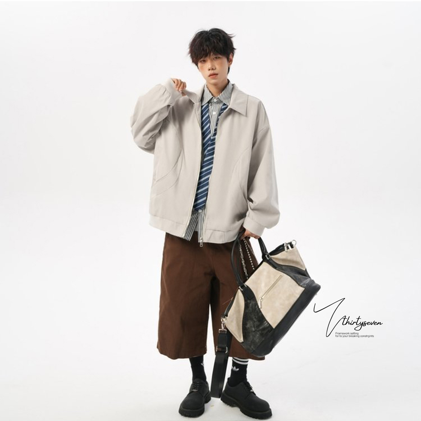 iconslab美式 ics 复古棒球服PU皮夹克休闲外套秋 黄俊捷同款