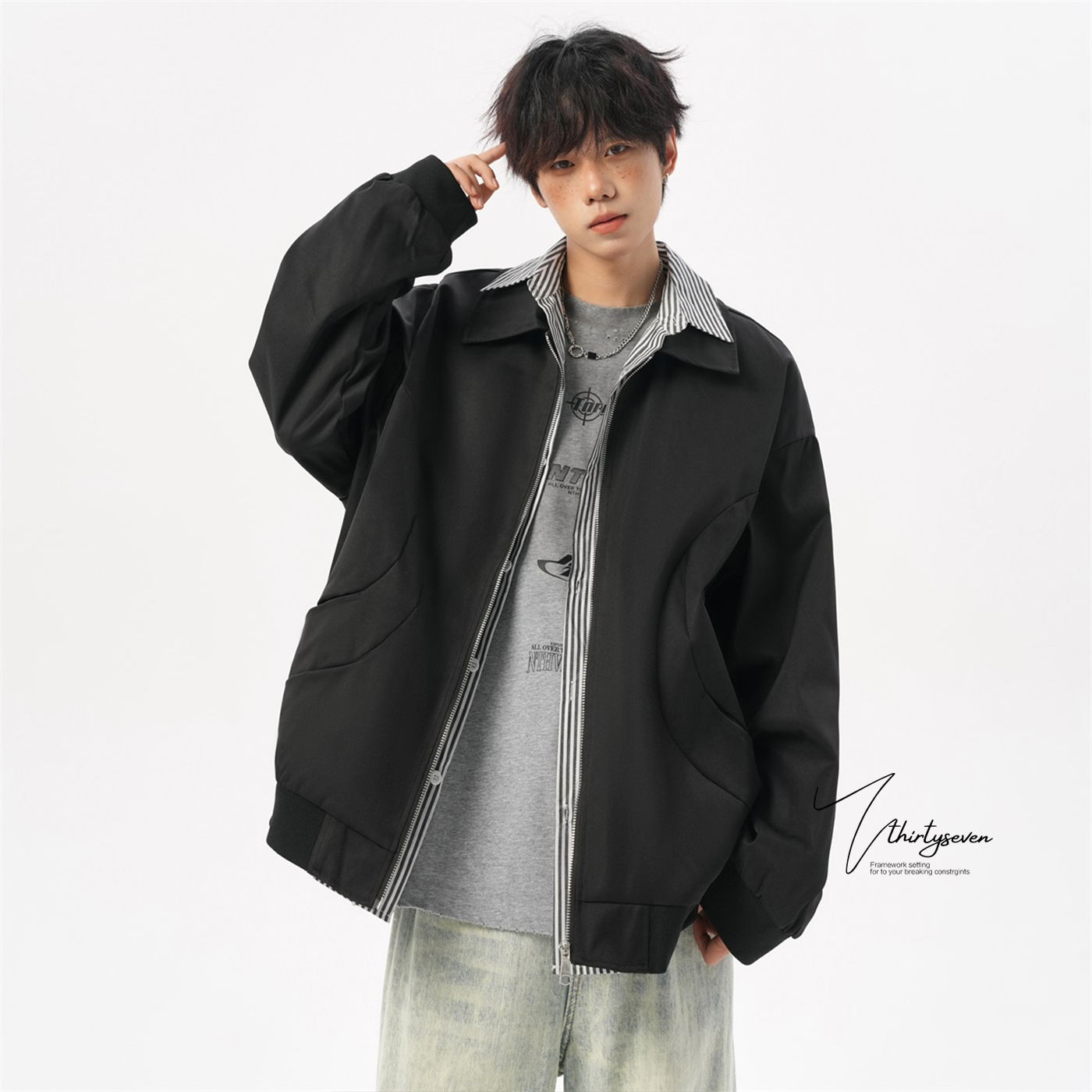 宽松痞帅外套男款 Jeep吉普美式 男装 潮牌大码 复古翻领夹克男春秋款