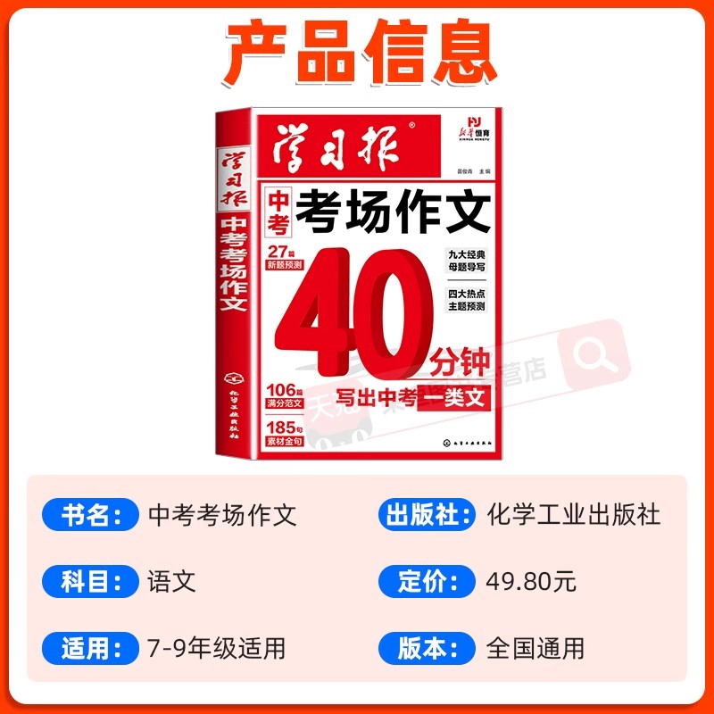 大全初中高分金句摘抄押题 母题导写佳作借鉴备考新题预测热点素材作文备考冲刺高分作文写作模版 2025版 学习报中考考场作文经典