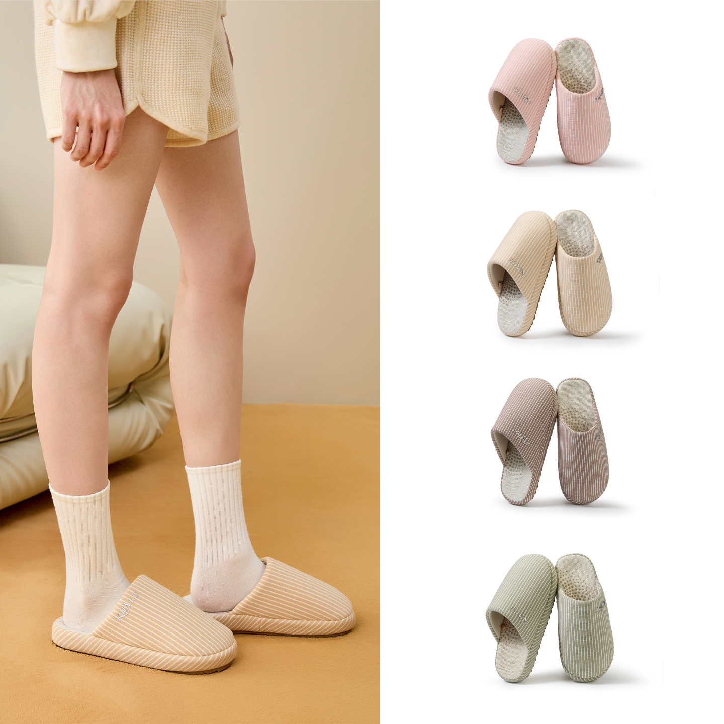 情侣室内居家用防滑男 2025新款 徕米亚艾草抑菌防臭棉拖鞋 女秋冬季