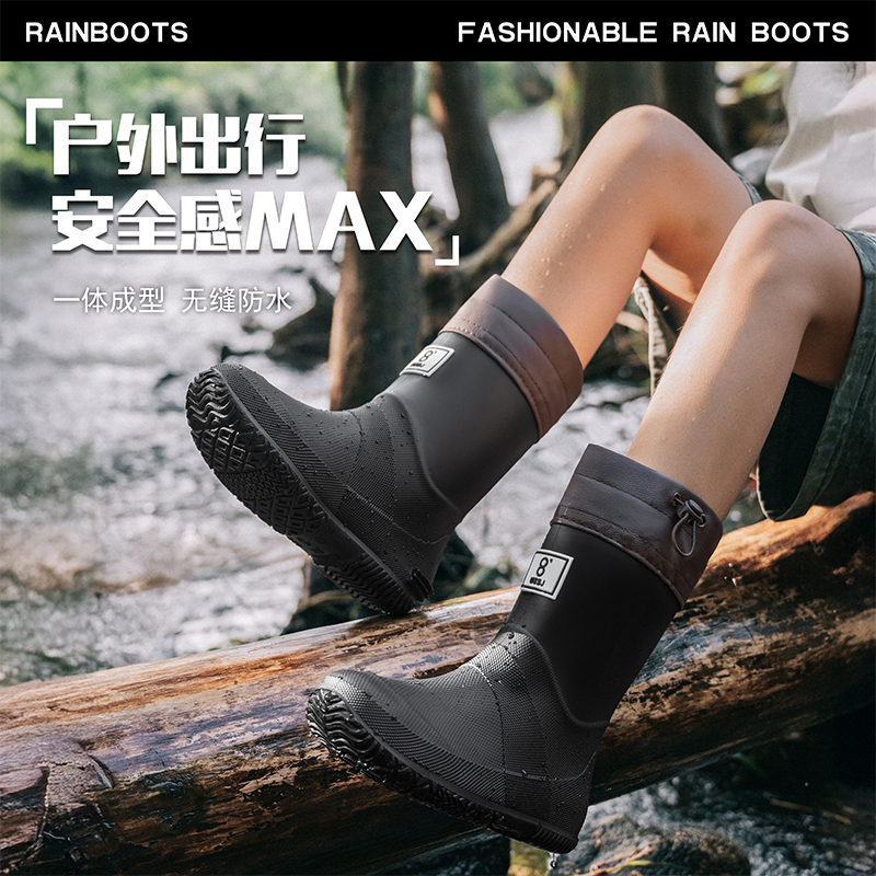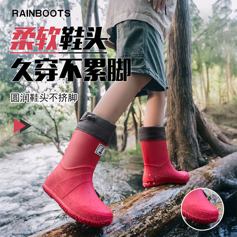 户外雨林徒步胶鞋 亲子雨鞋 防水折叠防滑雨靴2025新款 中筒水鞋 女款