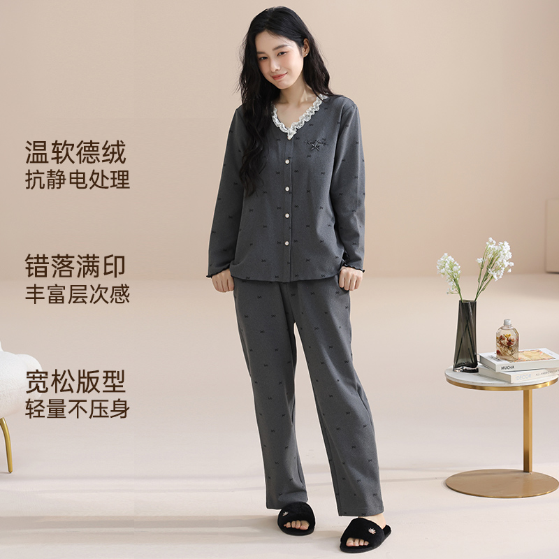 大码 玛伦萨睡衣女2025秋冬新款 家居服套装 长裤 抗静电保暖德绒长袖