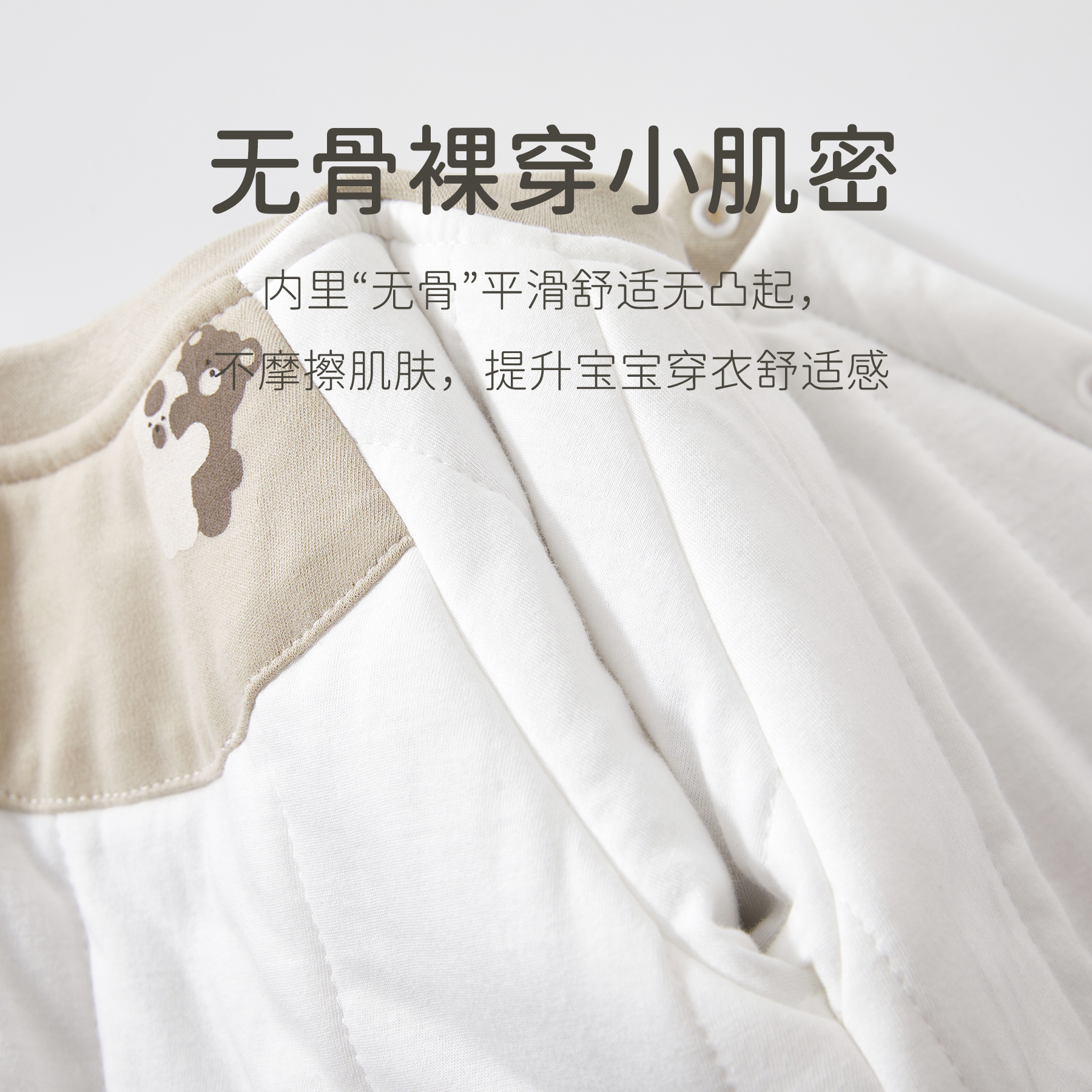 婧麒婴儿夹棉保暖长袖 偏开和尚服 秋冬连体衣新生儿小月龄宝宝冬季
