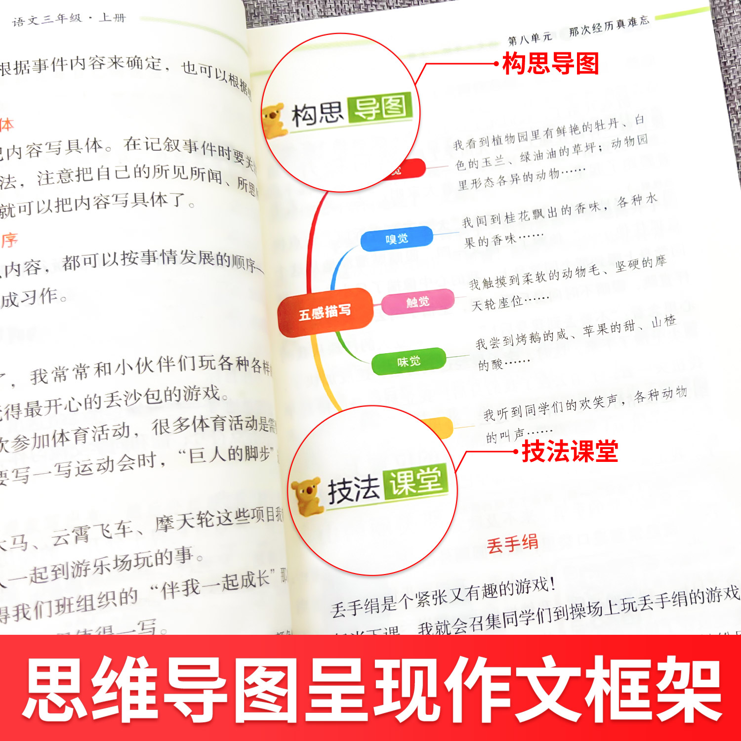 训练技巧 语文思维导图满分范文阅读优秀新版 2025新三年级同步作文人教版 上下册小学作文书小学生作文大全3年级开心写作文老师推荐