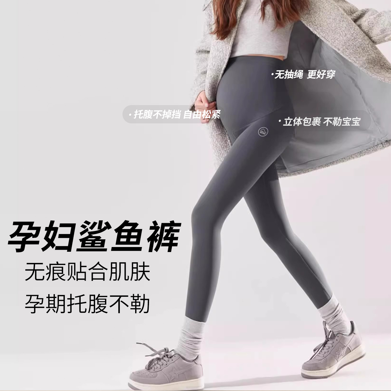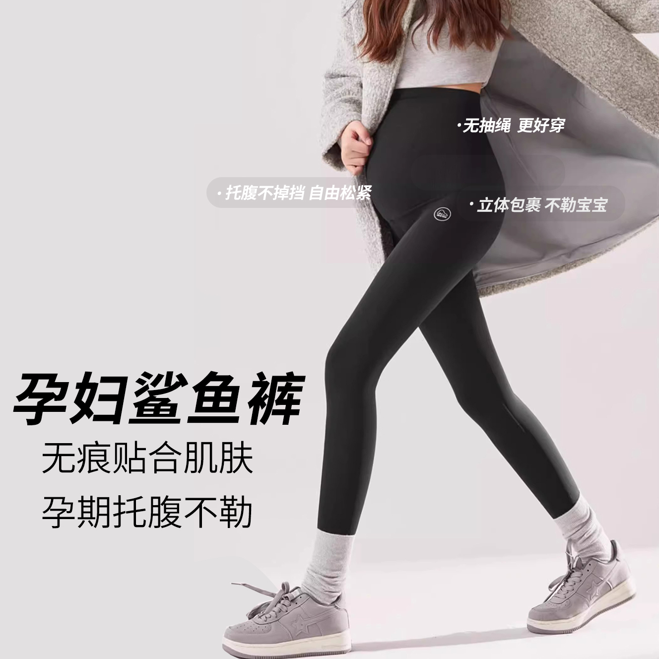 子秋冬装 休闲托腹长打底裤 春秋冬外穿加绒加厚保暖大码 孕妇鲨鱼裤