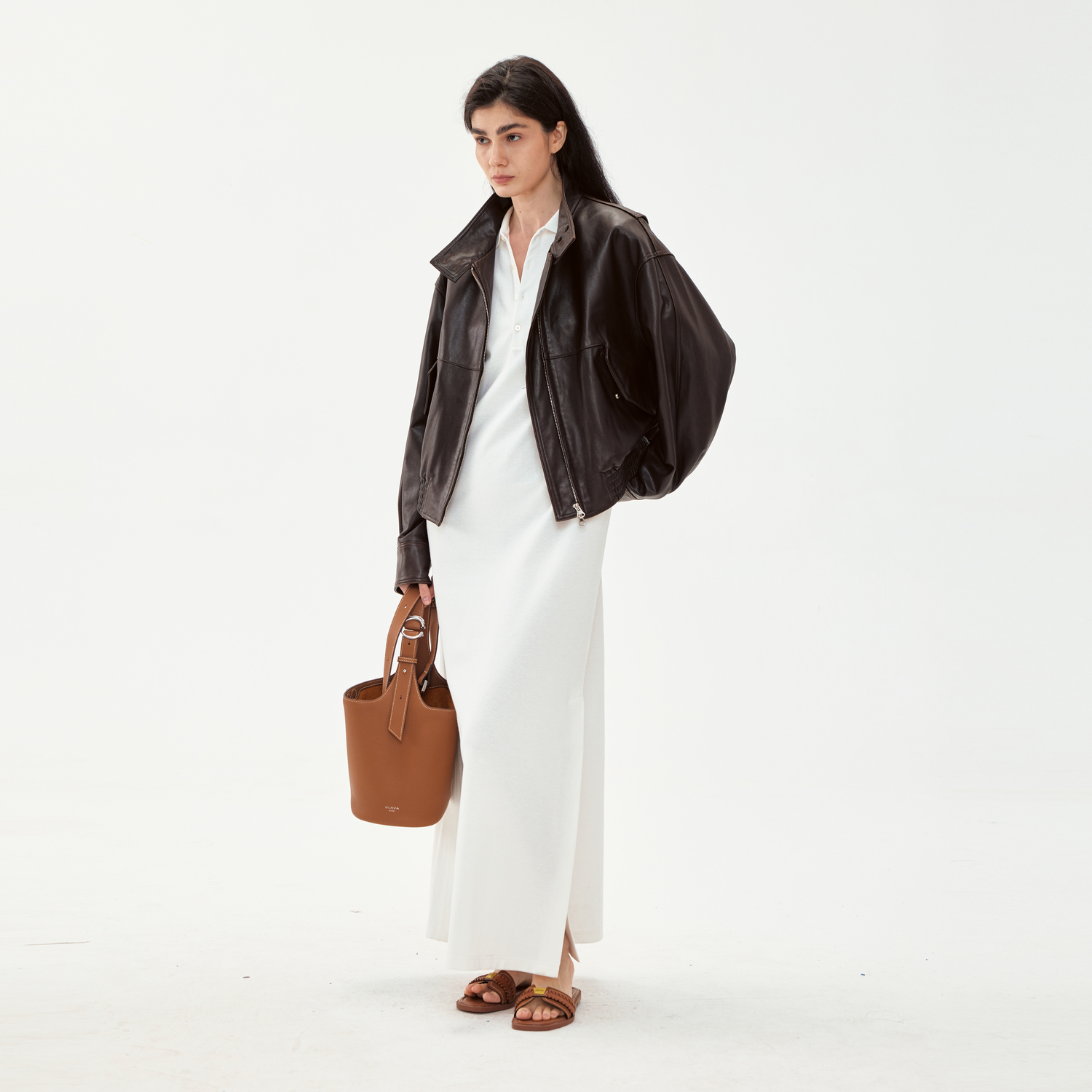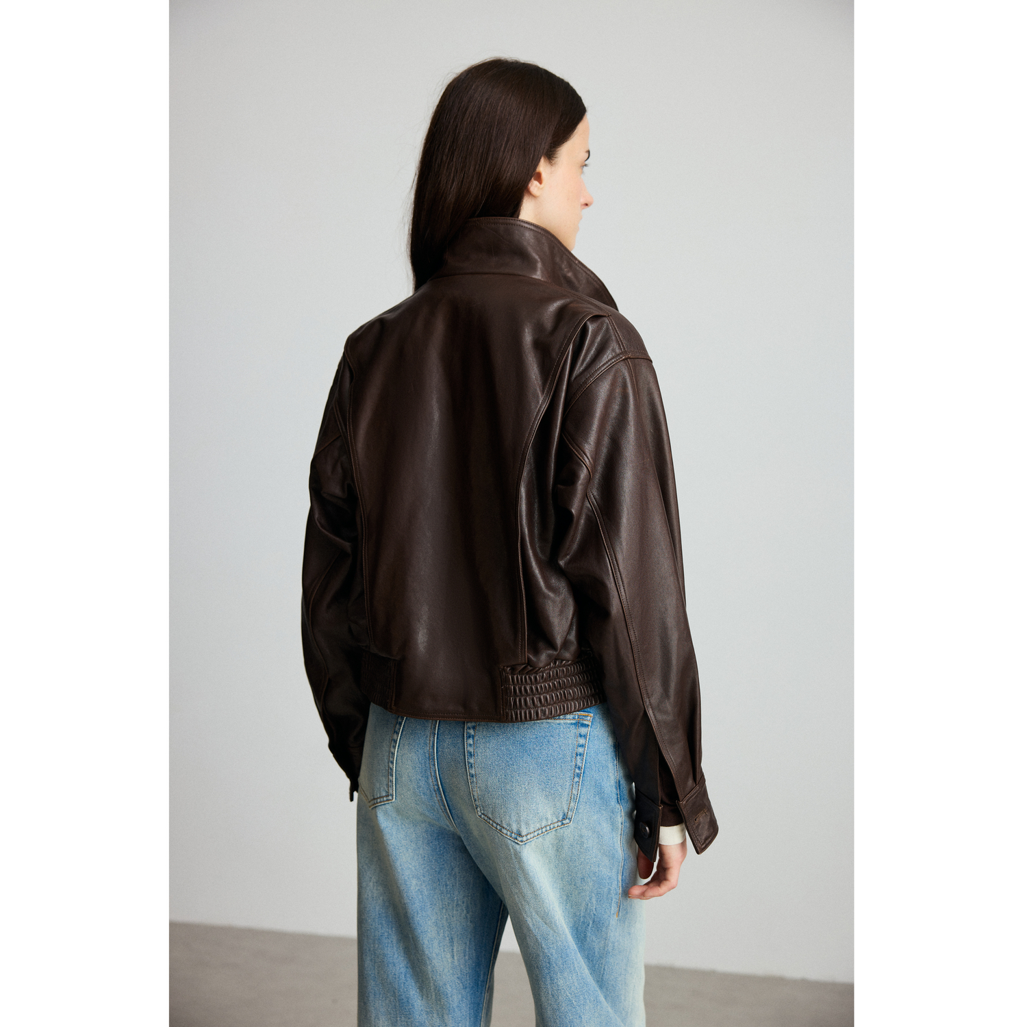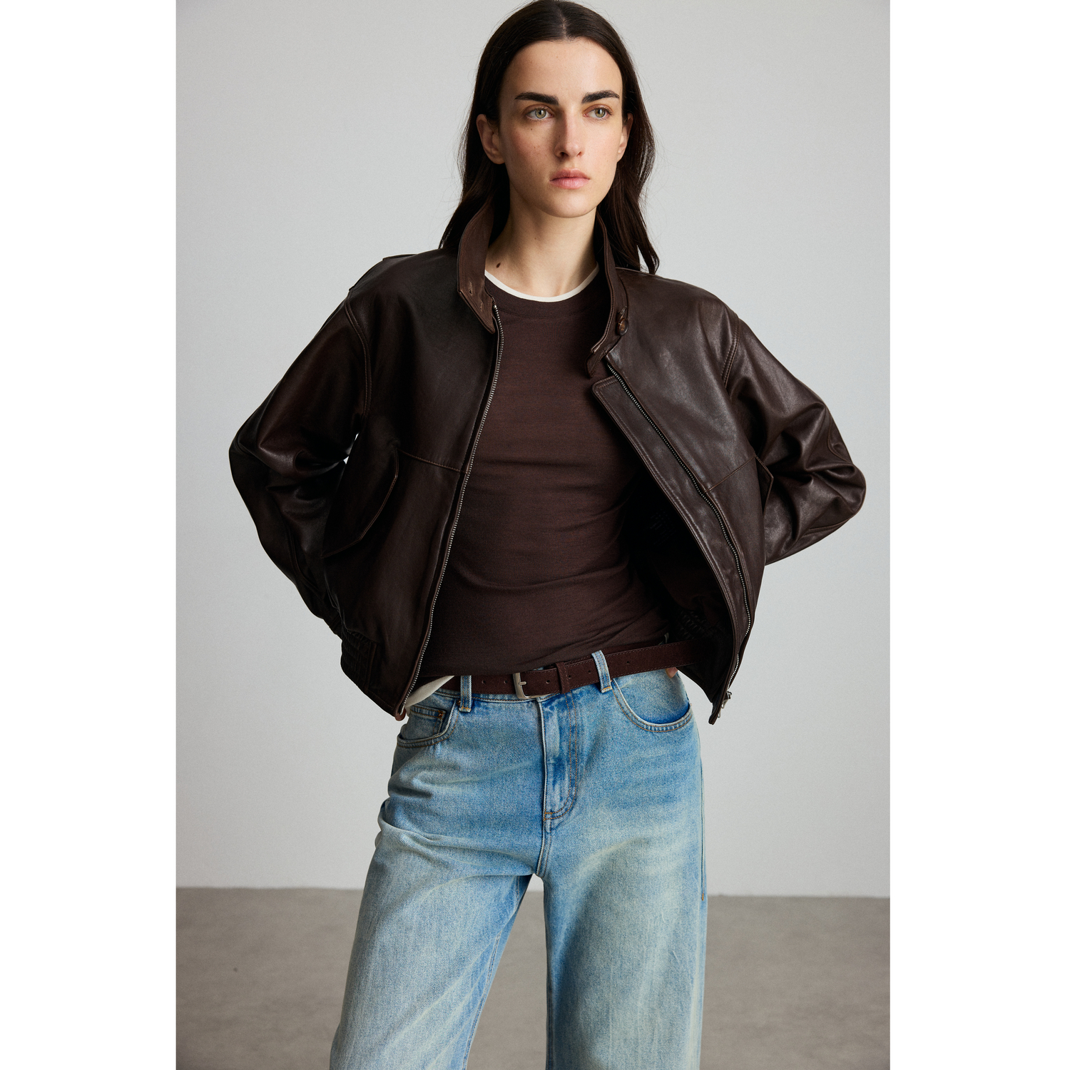 MISSCOCOON可可尼C3系列深棕色羊皮美式 立领显瘦气质短夹克外套女