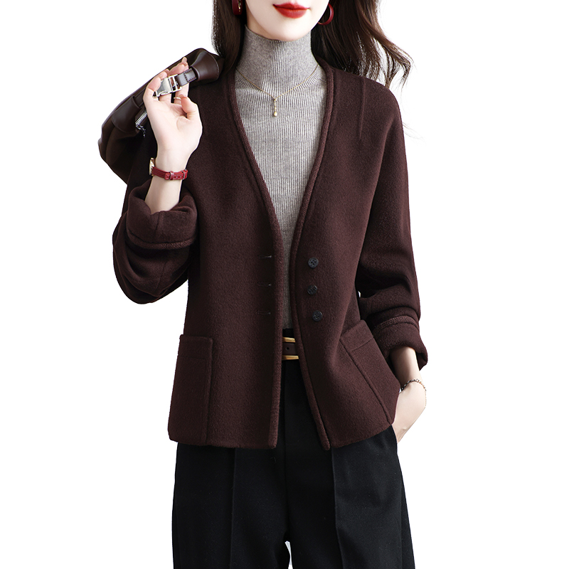 新款 羊毛呢小个子百搭显瘦休闲减龄外套秋冬 高端双面绒大衣女短款