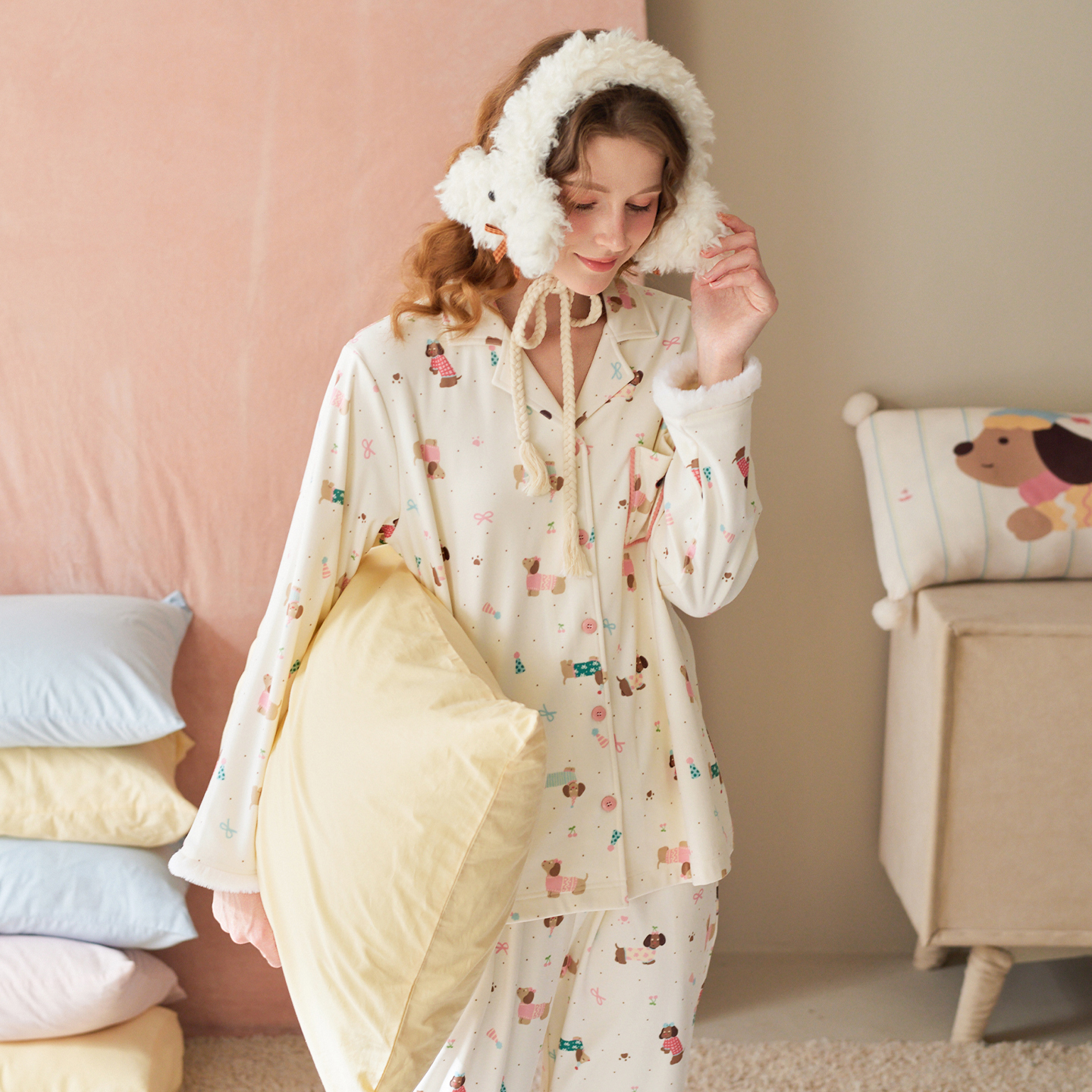 女士可爱卡通全棉家居服套装 睡衣女春秋季 2025新款 长裤 纯棉长袖