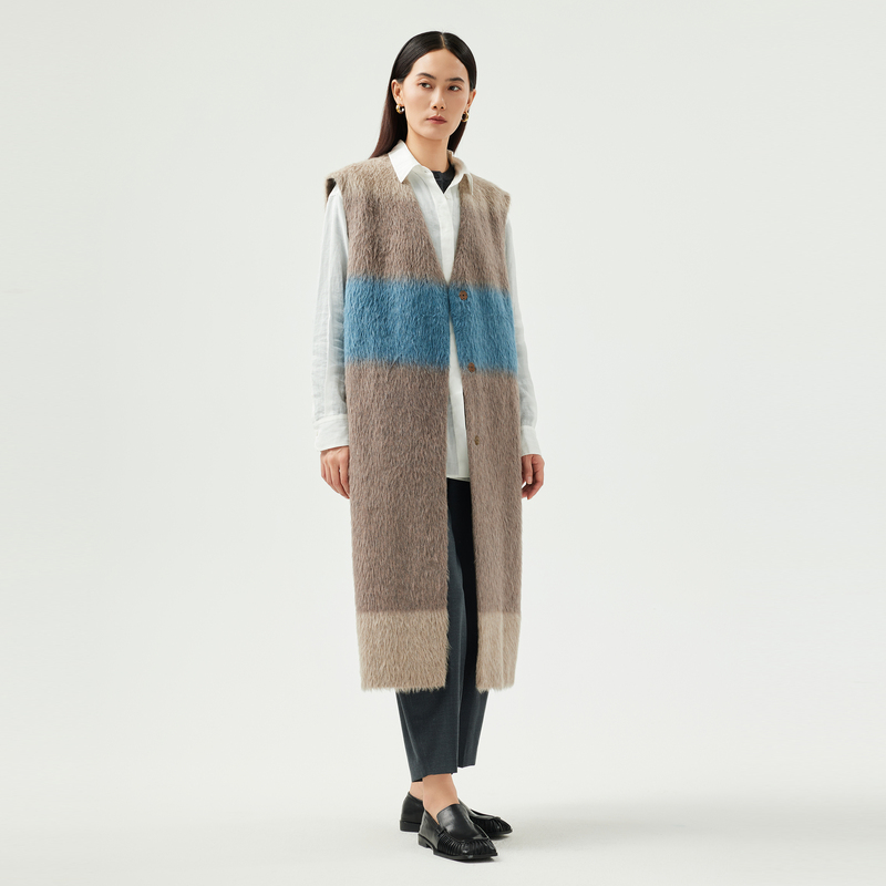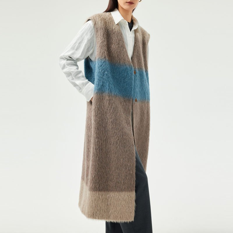 马甲开衫 绿色甜美双排扣针织毛衣连衣裙女秋冬新款 氛围感穿搭无袖