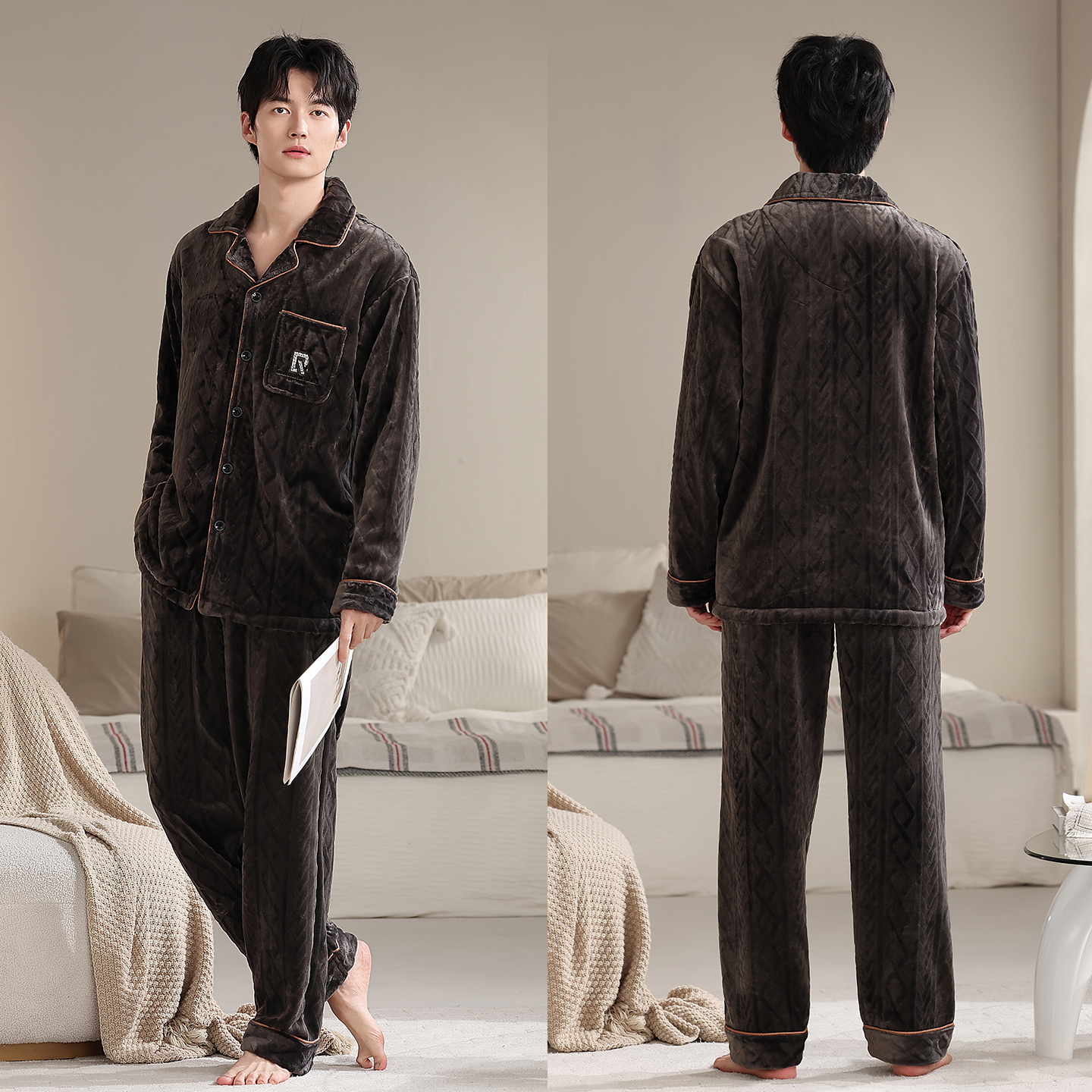秋冬季 保暖珊瑚绒家居服套装 加绒加厚长袖 海岛绒冬款 大码 睡衣男士