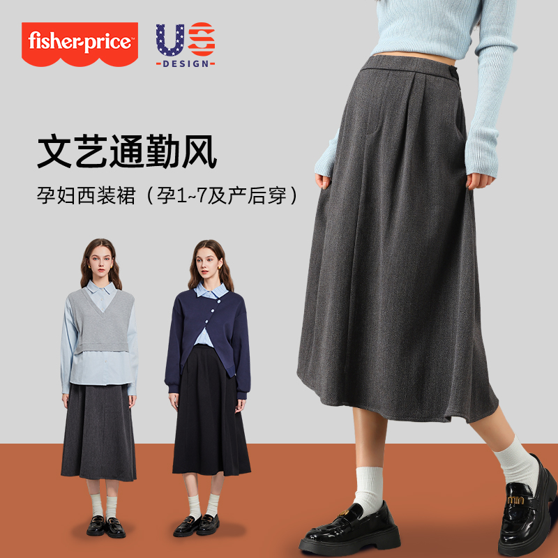 遮肚无托腹A字裙上衣套装 春秋中长款 半身裙2025新款 费雪孕妇西装