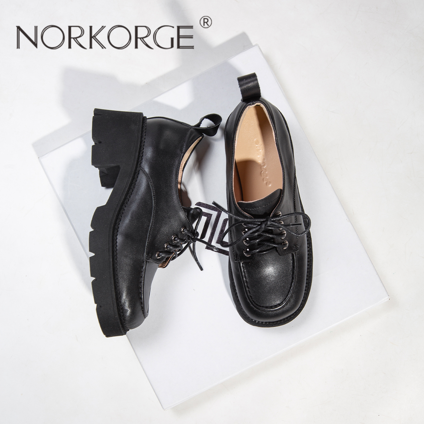 软面单鞋 2025新款 增高小皮鞋 学院黑色显瘦厚底真皮乐福鞋 复古法式