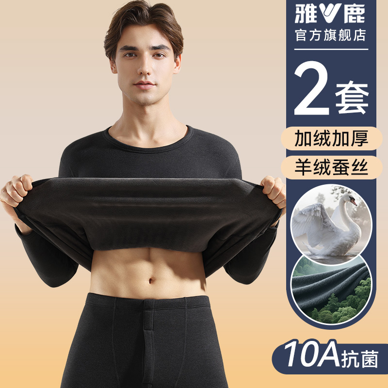 打底发热冬季 雅鹿莫代尔保暖内衣男士 男款 套装 加绒德加厚秋衣秋裤