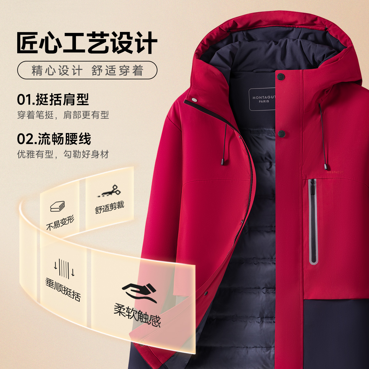 梦特娇25秋冬新男轻便保暖羽绒服无缝直冲百搭日常 充气枕设计