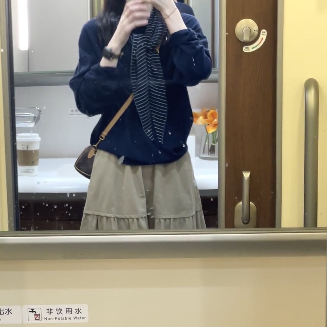 女 新款 韩系简约高级感披肩针织衫 搭配卡其色半身裙三件套ins秋季