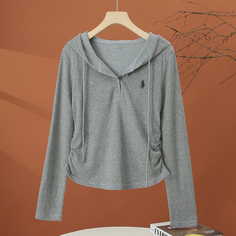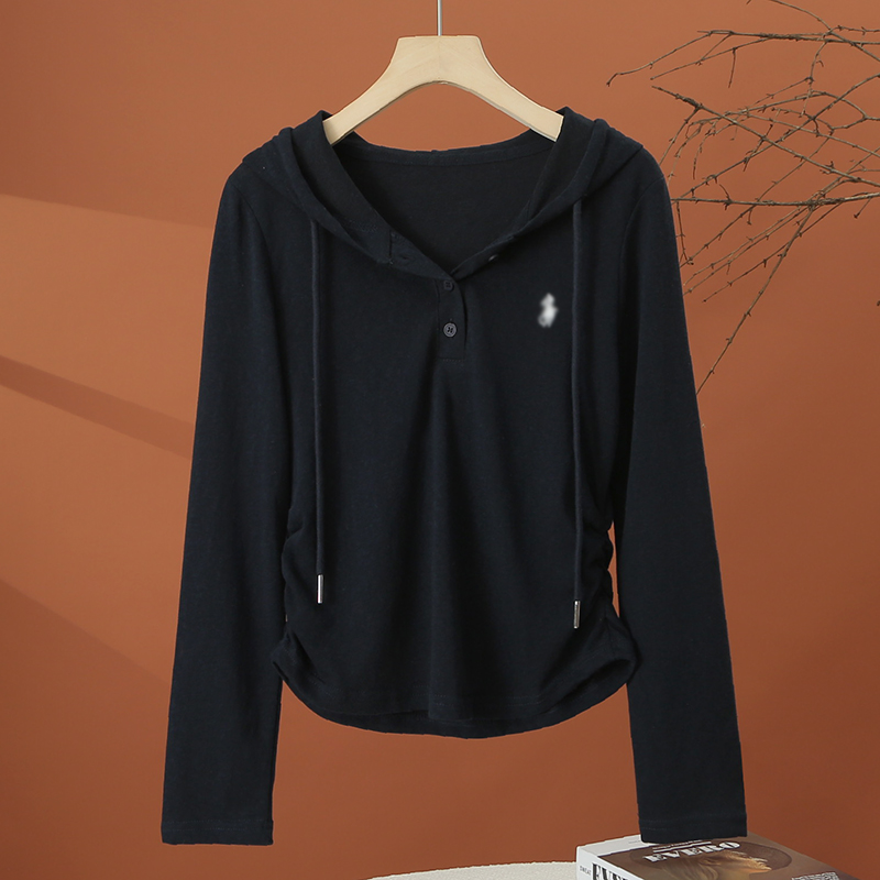 女装 t恤女2025新款 秋装 时尚 收腰上衣 秋季 洋气短款 小个子连帽长袖
