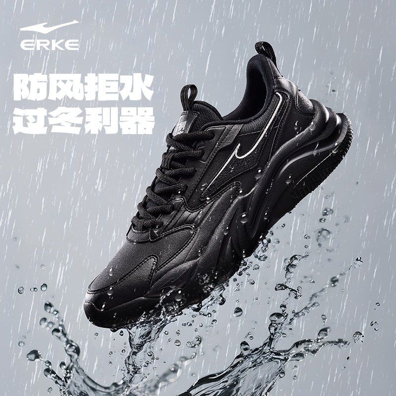 防泼水皮面黑色公务通勤休闲鞋 鸿星尔克男鞋 运动鞋 新款 桀骜秋冬季