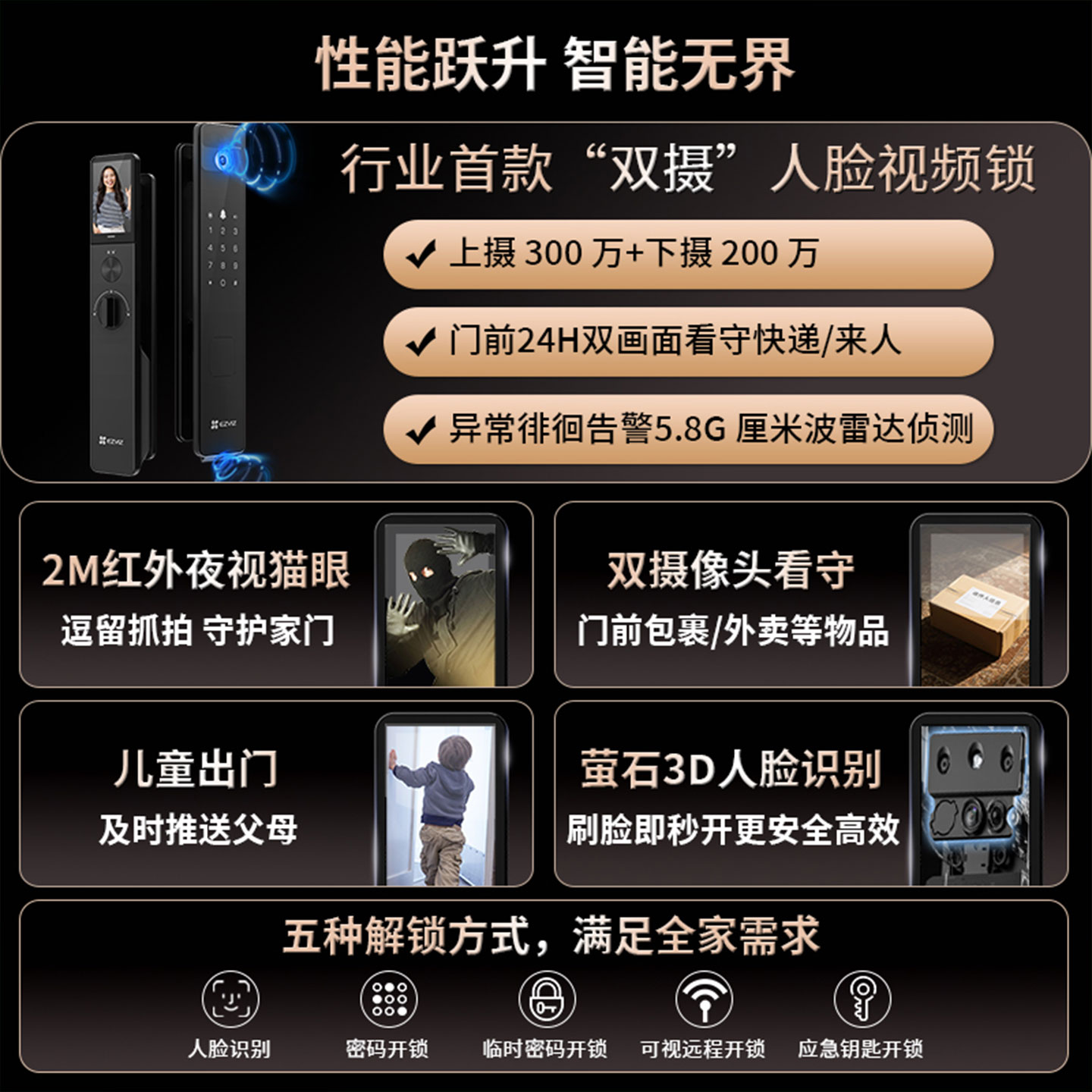 凯迪仕Q20FPro双摄猫眼大屏人脸指纹密码 电子锁入户门智能门锁