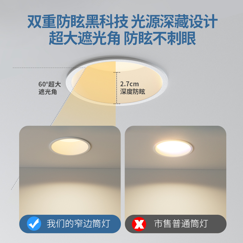 LED防眩护眼筒灯家用客厅嵌入式 窄边框深杯天花无主灯过道灯射灯