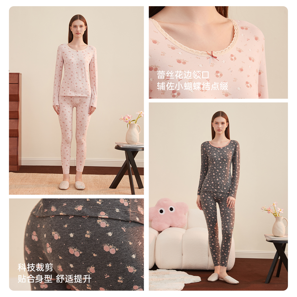 套装 防静电玻尿酸秋衣秋裤 亲肤修身 草本初色保暖内衣女2024年新款