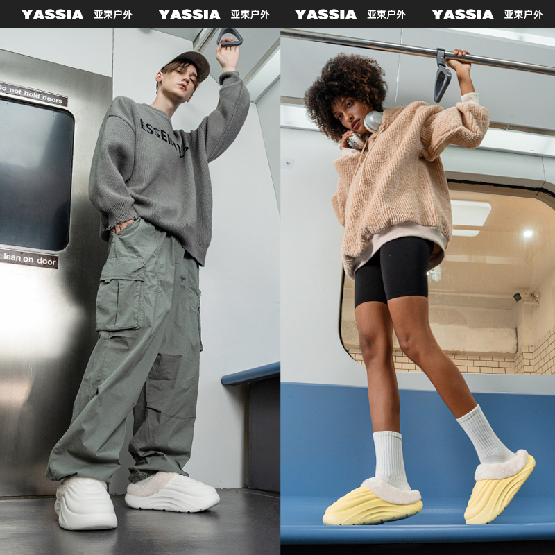 秋 防滑居家鞋 亚束破茧女士防水毛毛绒拖鞋 包头防寒棉拖毛绒棉拖鞋