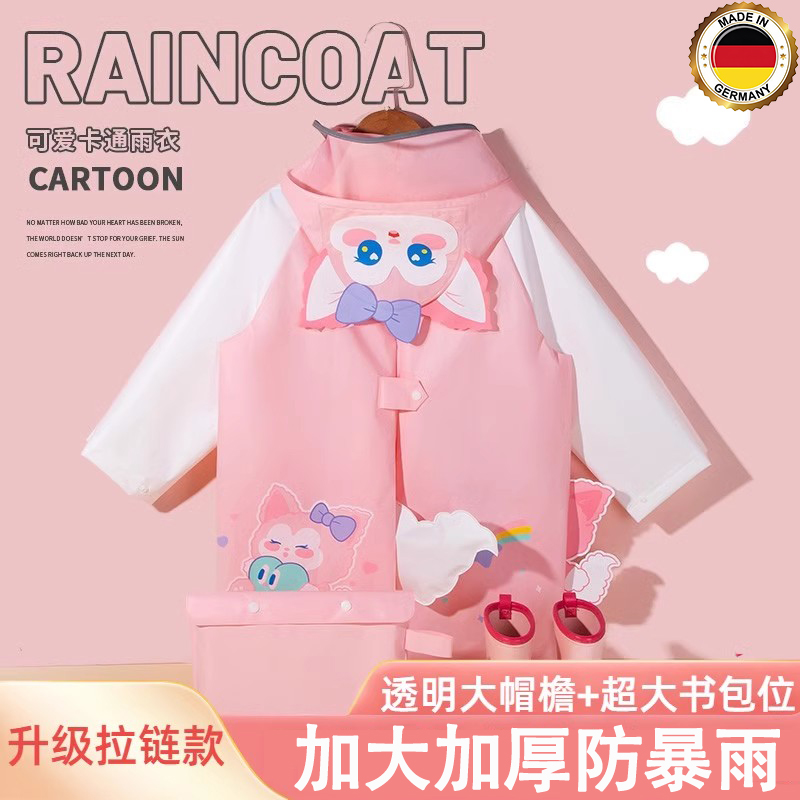 备美儿童雨衣小学生上学专用女孩男童2025新款 防暴雨带书包位雨披