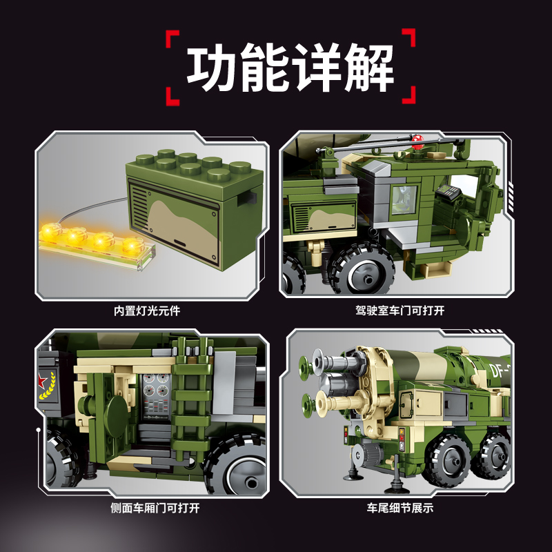 玩具男礼物 森宝积木东风21D导弹车拼搭积木军事模型拼装 新品