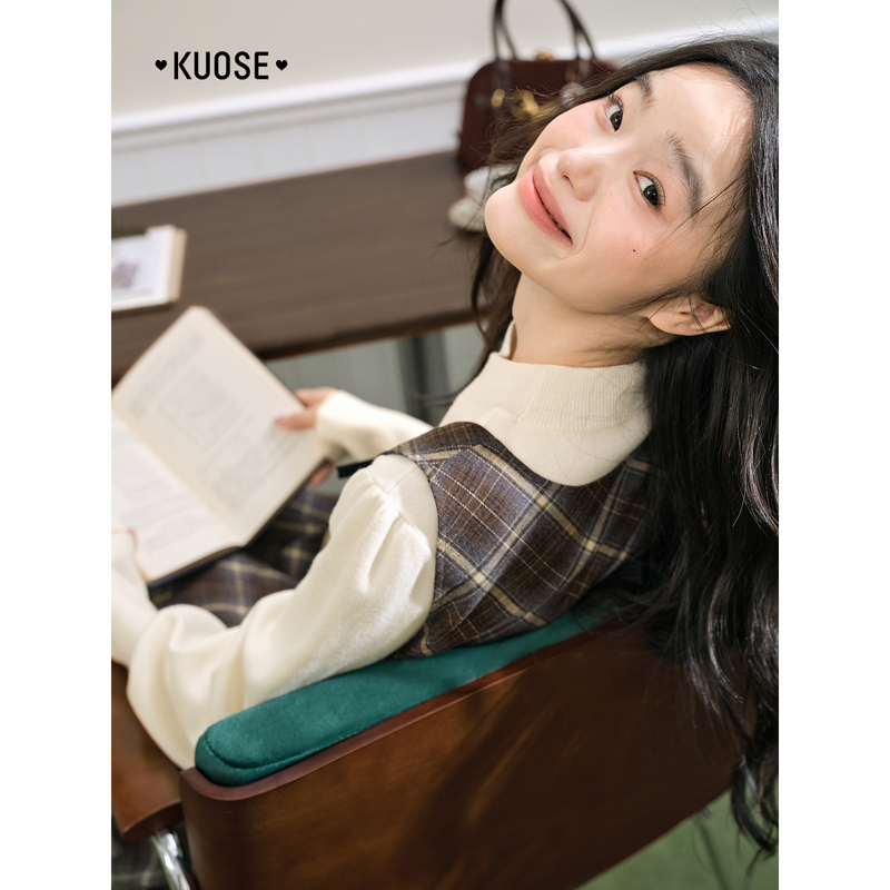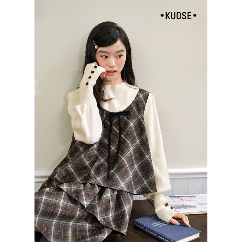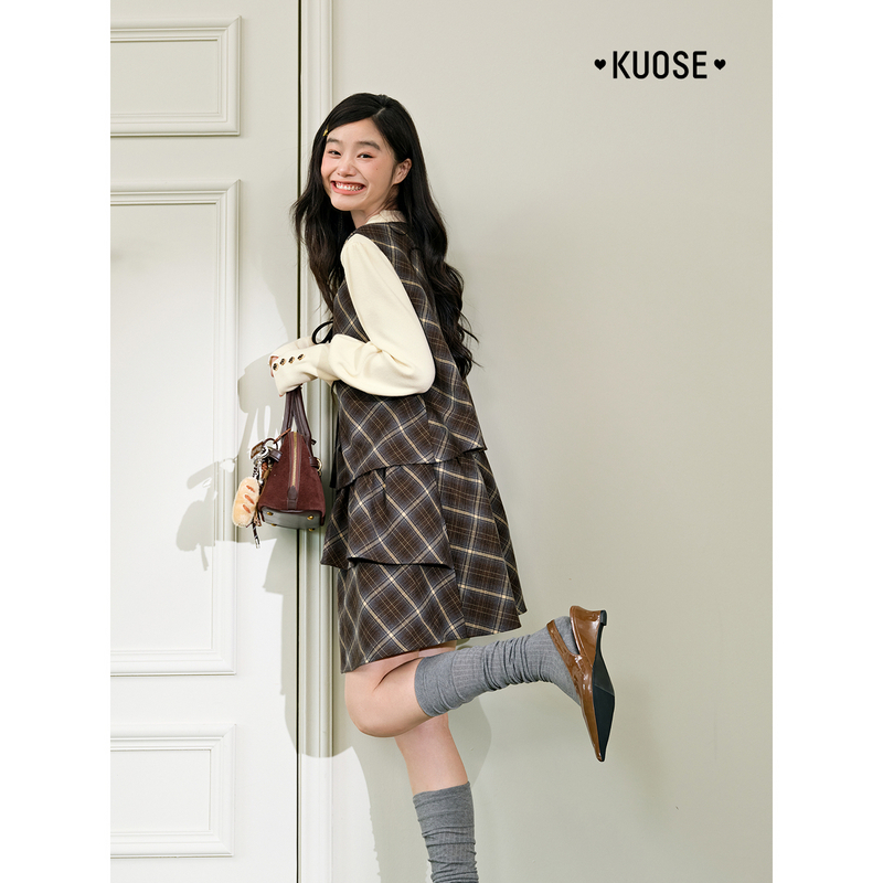 阔色格子外穿吊带背心裙荷叶边连衣裙2025秋冬季 女短裙子 气质新款