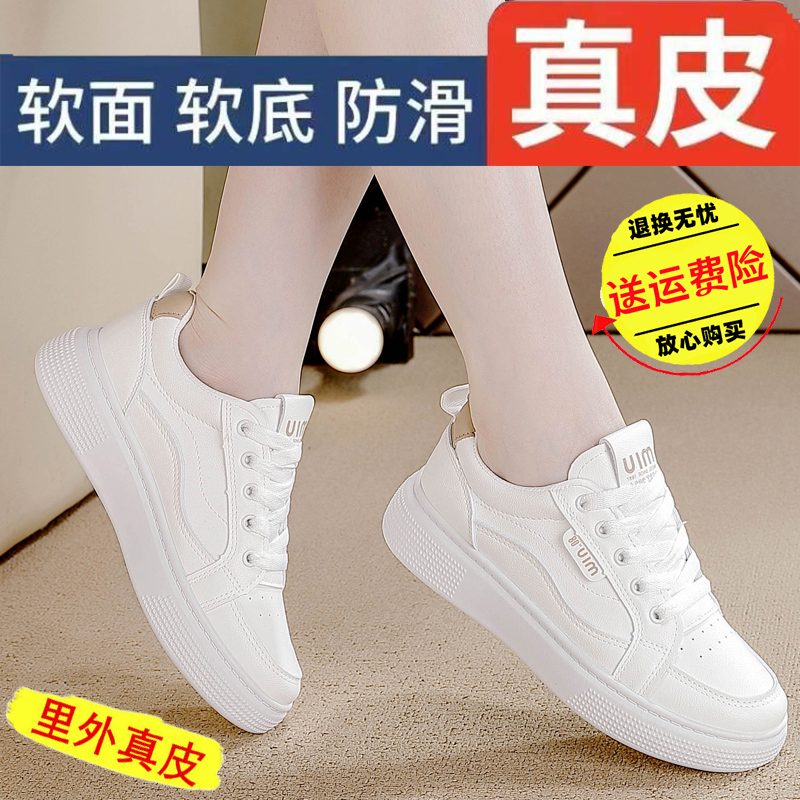 轻便软底运动休闲鞋 春秋百搭厚底板鞋 子女 女2025年新款 真皮小白鞋