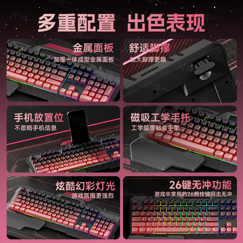 机械手感有线键盘鼠标耳机套装 电脑笔记本通用三件套 电竞游戏台式